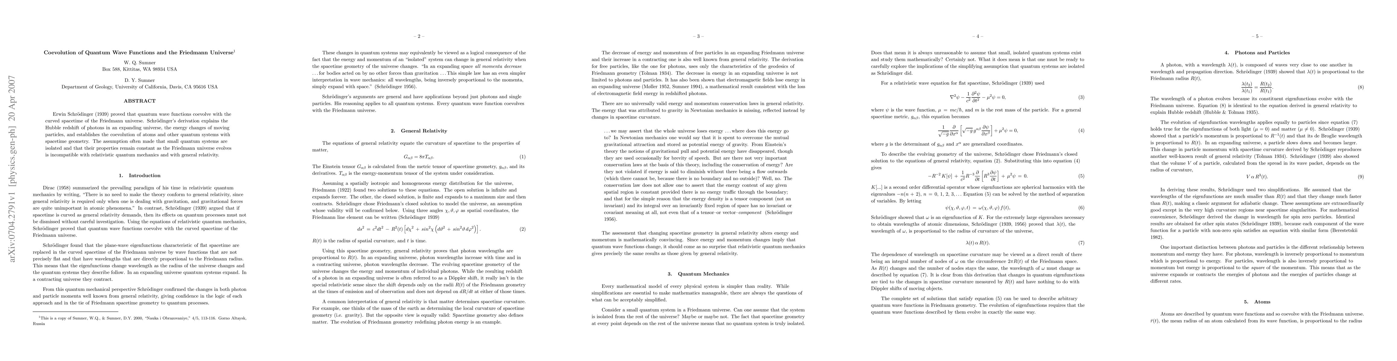 Summary: Schrödinger's 1939 proof demonstrates that quantum wave functions coevolve with the Friedmann universe's curved spacetime, explaining phenomena like Hubble redshift and energy changes in moving particles, challenging the notion of isolated quantum systems in an evolving universe. This coevolution aligns relativistic quantum mechanics with general relativity.