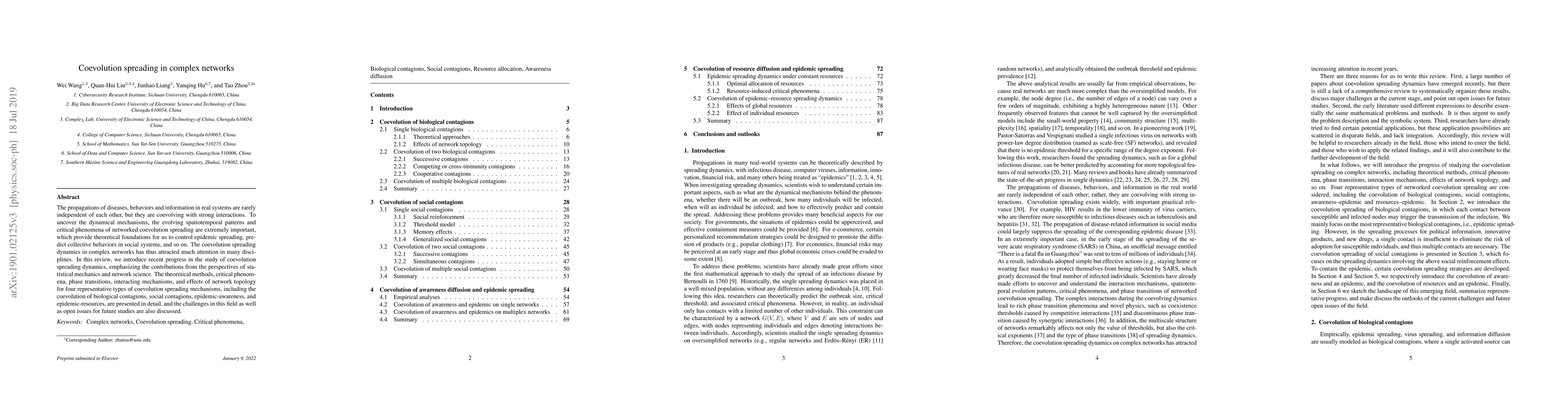 This paper reviews recent advances in coevolution spreading dynamics in complex networks, focusing on statistical mechanics and network science perspectives. It covers theoretical methods, phase transitions, and critical phenomena of four coevolution types: biological contagions, social contagions, epidemic-awareness, and epidemic-resources, while discussing challenges and future research directions.