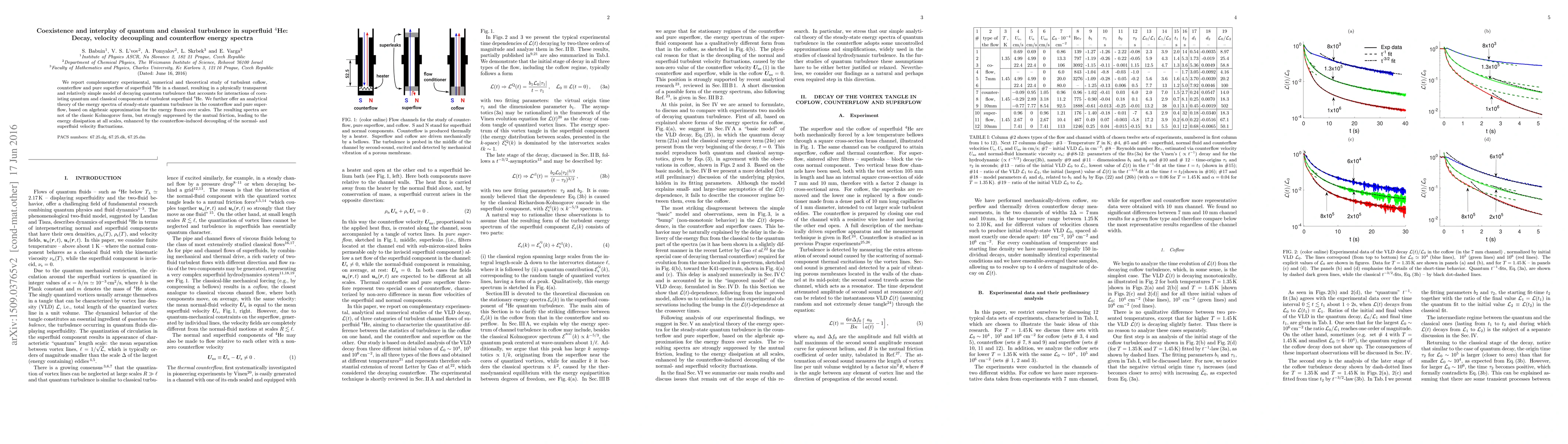 This study combines experimental, numerical, and theoretical approaches to explore the dynamics of superfluid He-4 turbulence, revealing a model for decaying quantum turbulence that considers both quantum and classical turbulence interactions. The research also provides an analytical theory for the energy spectra in counterflow and pure superflow, showing that the spectra deviate from classical Kolmogorov form due to mutual friction and counterflow-induced decoupling.