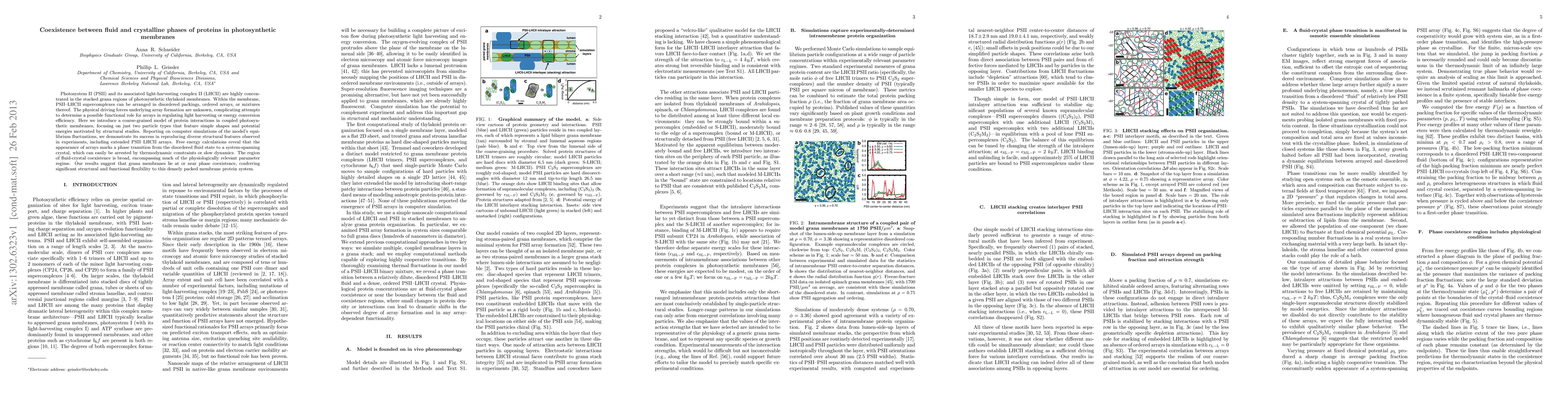 This paper uses a coarse-grained model to simulate the interactions between PSII and LHCII in photosynthetic membranes, demonstrating that arrays form due to a phase transition from fluid to crystalline states, with a broad coexistence region relevant to physiological conditions. The findings suggest structural and functional flexibility in grana membranes.