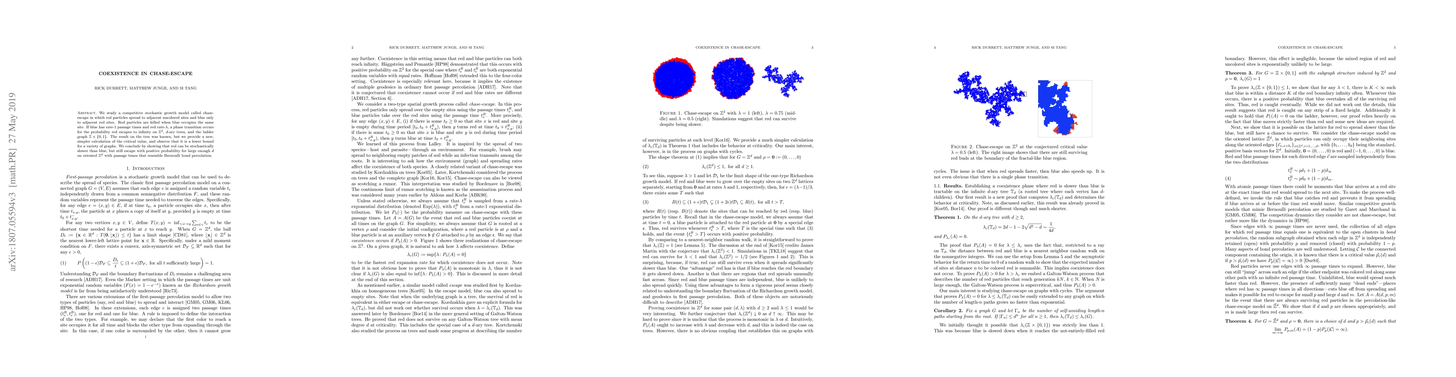 A competitive stochastic growth model study finds a phase transition for red particles escaping infinity on various graphs, including trees and oriented lattices, with blue particles exhibiting stochastically slower escape rates.
