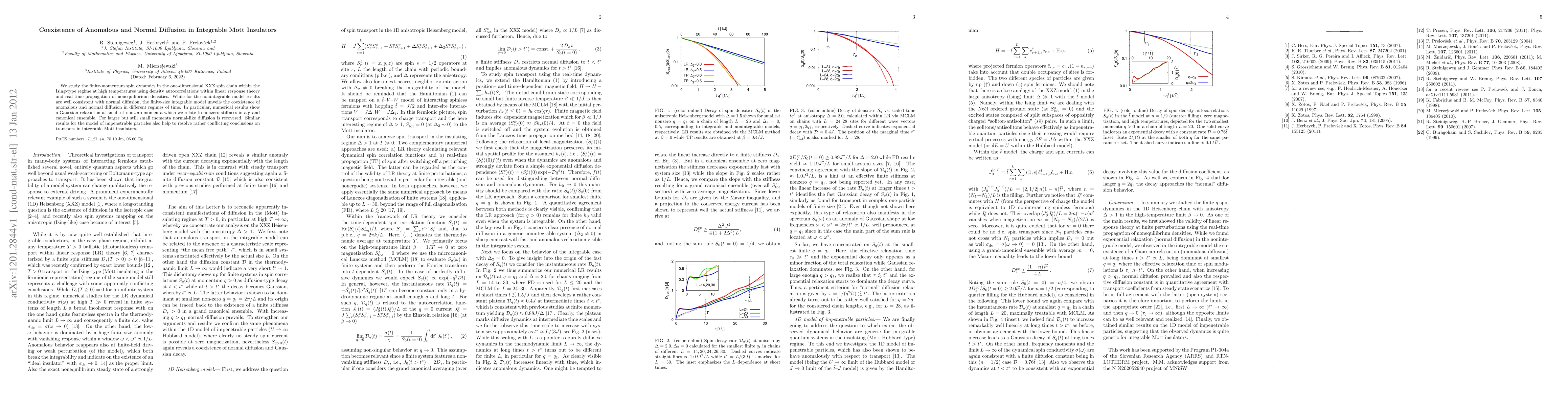 We study the finite-momentum spin dynamics in the one-dimensional XXZ spin chain within the Ising-type regime at high temperatures using density autocorrelations within linear response theory and real-time propagation of nonequilibrium densities. While for the nonintegrable model results are well consistent with normal diffusion, the finite-size integrable model unveils the coexistence of anomalous and normal diffusion in different regimes of time. In particular, numerical results show a Gaussian relaxation at smallest nonzero momenta which we relate to nonzero stiffness in a grand canonical ensemble. For larger but still small momenta normal-like diffusion is recovered. Similar results for the model of impenetrable particles also help to resolve rather conflicting conclusions on transport in integrable Mott insulators.