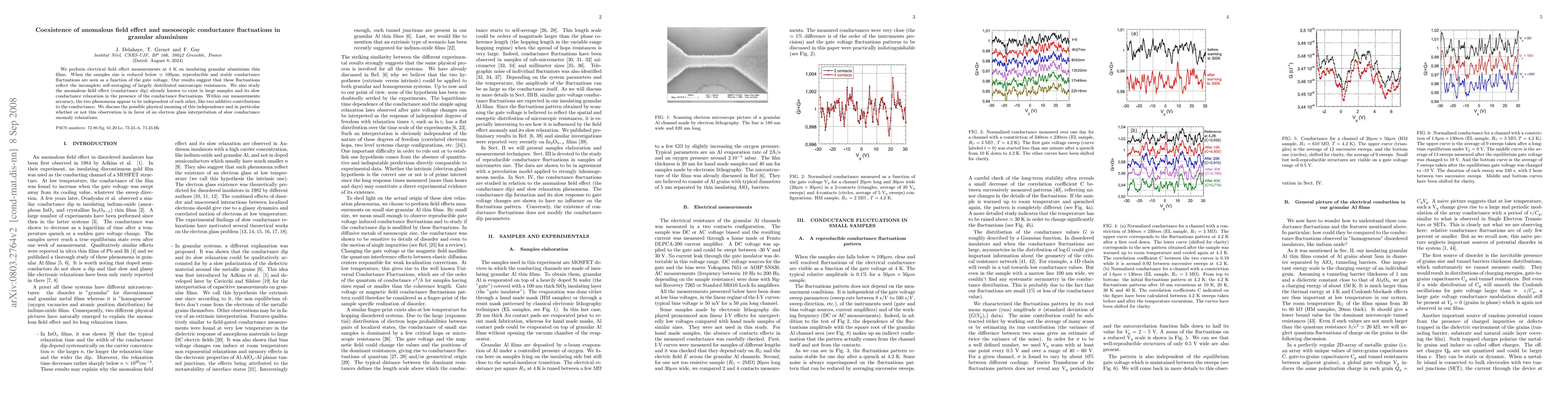 Researchers study conductance fluctuations in granular aluminum at 4K, finding they reflect incomplete self-averaging of microscopic resistances, and appear independent of an anomalous field effect.