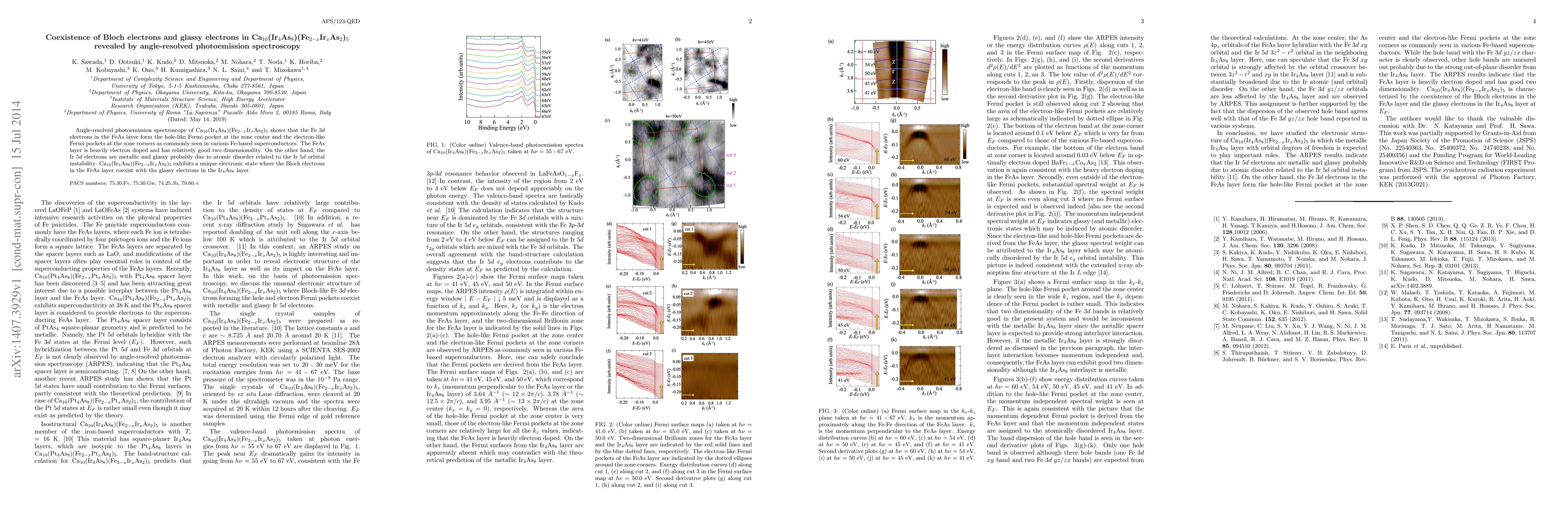 Researchers used angle-resolved photoemission spectroscopy to study Ca10(Ir4As8)(Fe2_xIrxAs2)5, revealing the coexistence of Bloch electrons in the FeAs layer with glassy electrons in the Ir 5d layer.
