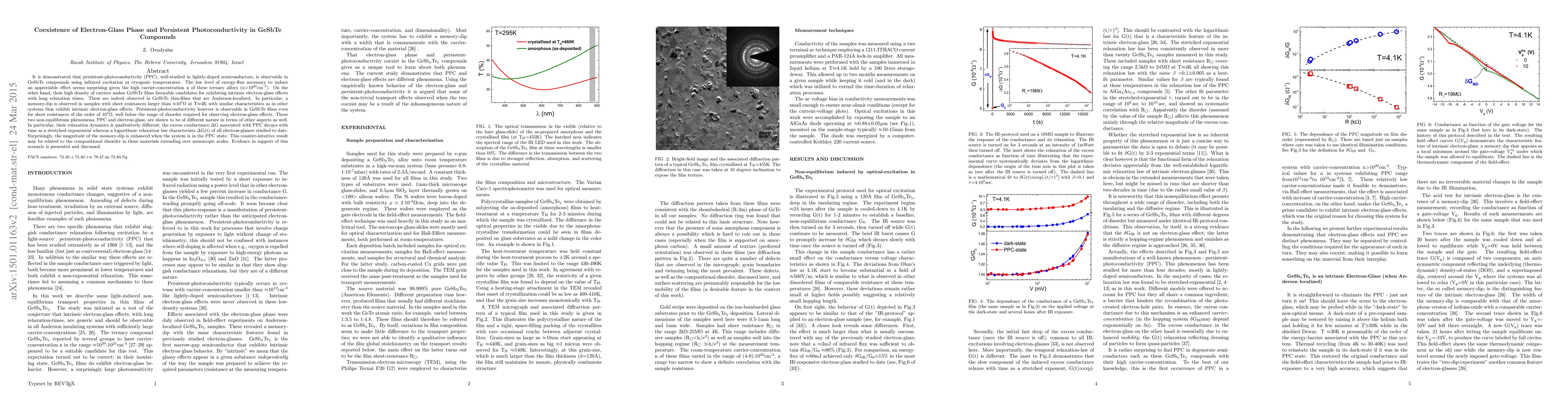 It is demonstrated that persistent-photoconductivity (PPC), well-studied in lightly-doped semiconductors, is observable in GeSbTe compounds using infrared excitation at cryogenic temperatures. The low level of energy-flux necessary to induce an appreciable effect seems surprising given the high carrier-concentration n of these ternary alloys. On the other hand, their high density of carriers makes GeSbTe films favorable candidates for exhibiting intrinsic electron-glass effects with long relaxation times. These are indeed observed in GeSbTe thin-films that are Anderson-localized. In particular, a memory-dip is observed in samples with sheet resistances larger than app. 100 kOhms at T=4K with similar characteristics as in other systems that exhibit intrinsic electron-glass effects. Persistent-photoconductivity however is observable in GeSbTe films even for sheet resistances of the order of 1 kOhm, well below the range of disorder required for observing electron-glass effects. These two non-equilibrium phenomena, PPC and electron-glass, are shown to be of different nature in terms of other aspects as well. In particular, their relaxation dynamics is qualitatively different; the excess conductance dG/G associated with PPC decays with time as a stretched exponential whereas a logarithmic relaxation law characterizes dG(t) of all electron-glasses studied to date. Surprisingly, the magnitude of the memory-dip is enhanced when the system is in the PPC state. This counter-intuitive result may be related to the compositional disorder in these materials extending over mesoscopic scales. Evidence in support of this scenario is presented and discussed.