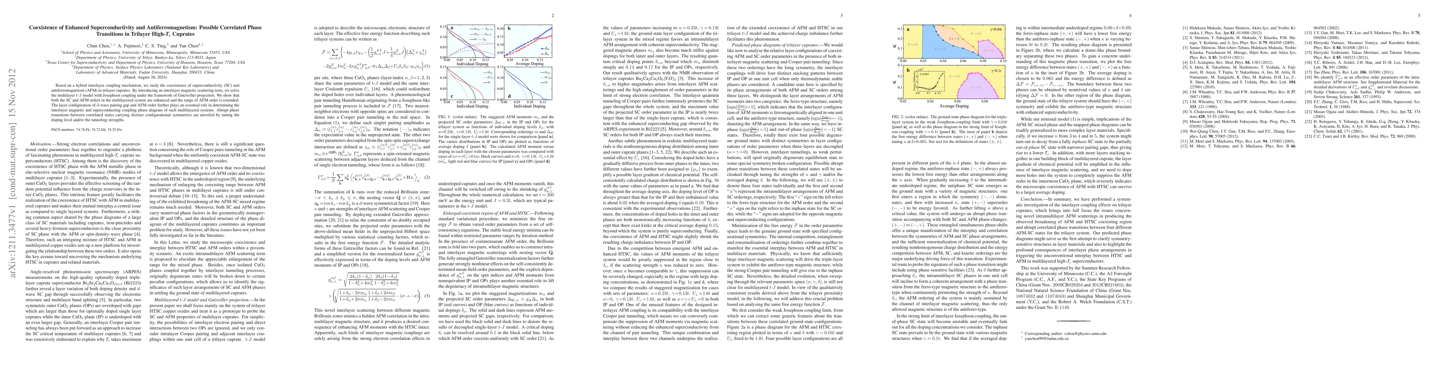 This paper investigates the coexistence of superconductivity and antiferromagnetism in trilayer high-Tc cuprates using a hybrid interlayer coupling mechanism. It reveals enhanced superconductivity and antiferromagnetism, with extended AFM order, and identifies abrupt phase transitions between correlated states influenced by doping and tunneling strengths.