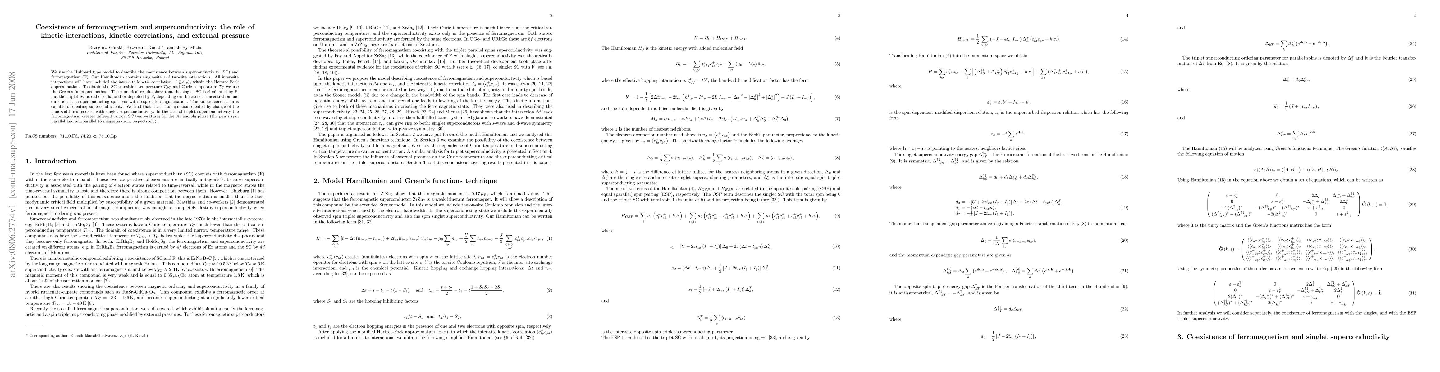 superconductivity (SC) and ferromagnetism (F). Our Hamiltonian contains