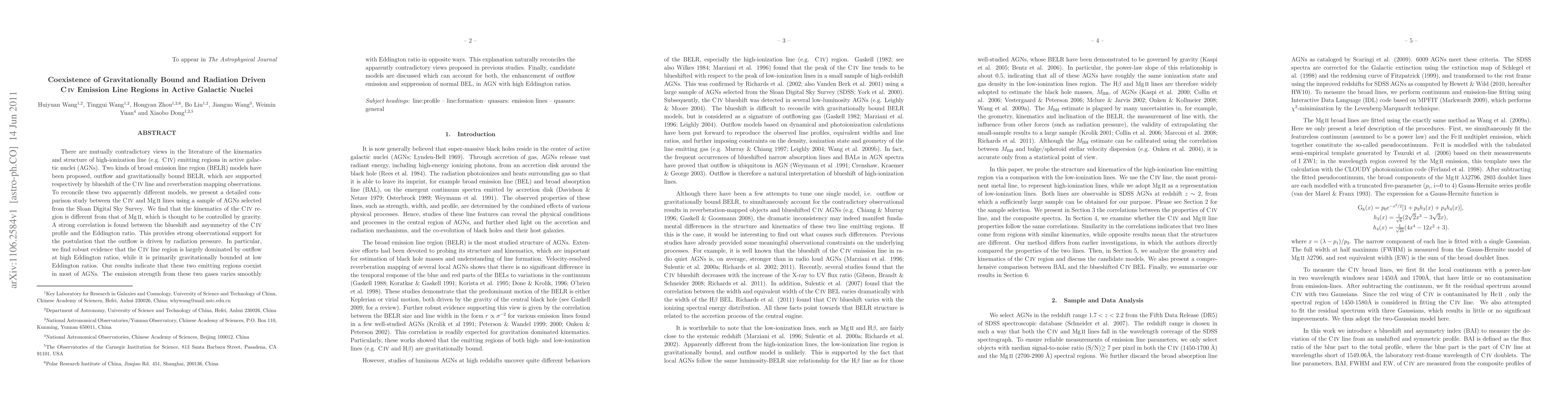 The study reconciles two AGN BELR models by comparing CIV and MgII lines, finding CIV kinematics differ from MgII, suggesting gravity controls MgII while radiation pressure drives CIV outflow. The results indicate coexistence of gravitationally bound and radiation-driven CIV regions in AGNs, with emission strength varying smoothly with Eddington ratio.