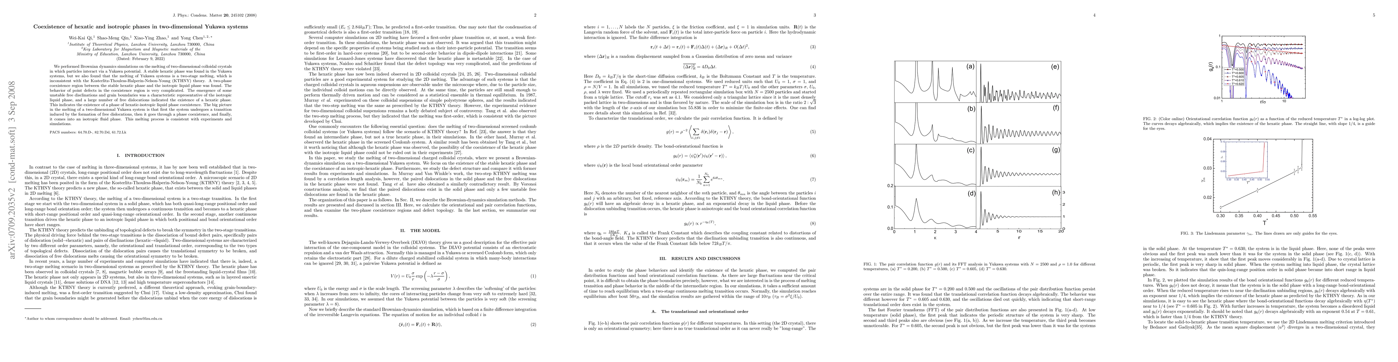 The paper presents a detailed analysis of pair correlation and bond-orientational correlation functions in two-dimensional Yukawa systems, revealing a two-stage melting process and the coexistence of isotropic liquid and hexatic phases.