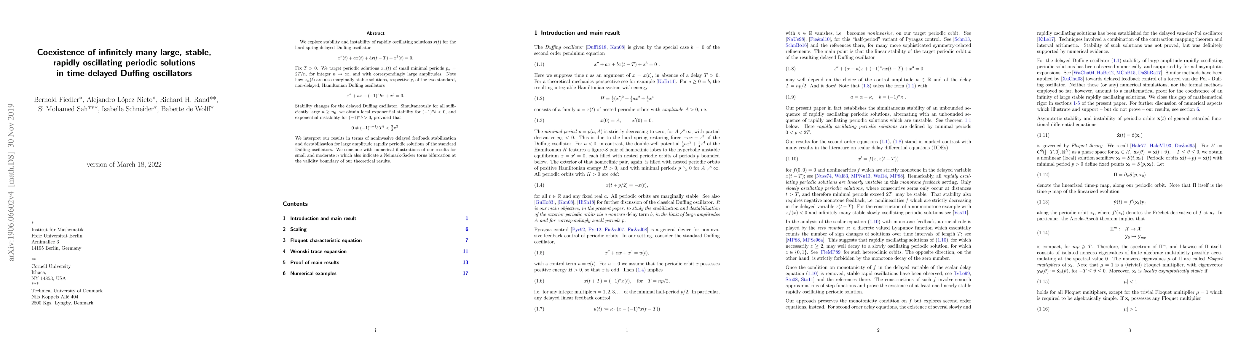 This paper investigates the stability of rapidly oscillating periodic solutions in time-delayed Duffing oscillators, revealing coexistence of infinitely many large, stable, and rapidly oscillating periodic solutions. The study finds local exponential stability for certain parameter values and exponential instability for others, highlighting the role of noninvasive delayed feedback in stabilization and destabilization.