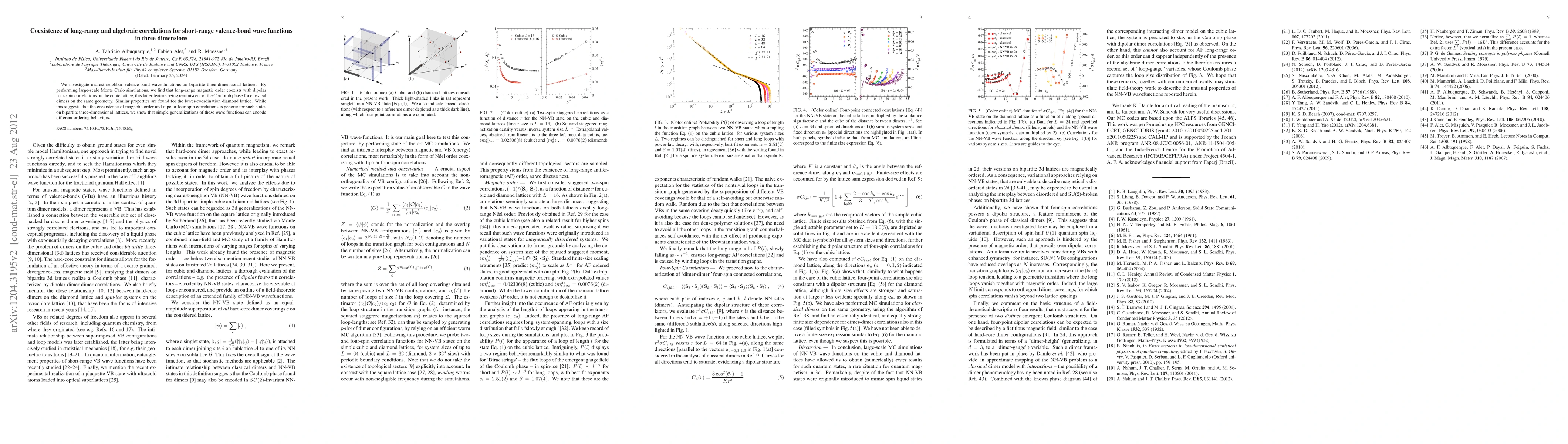 This paper explores nearest-neighbor valence-bond wave functions on three-dimensional lattices, revealing that long-range magnetic order coexists with dipolar four-spin correlations, akin to the Coulomb phase in classical dimers. The study suggests this coexistence is generic for bipartite three-dimensional lattices, though different wave function generalizations can encode varied ordering behaviors.