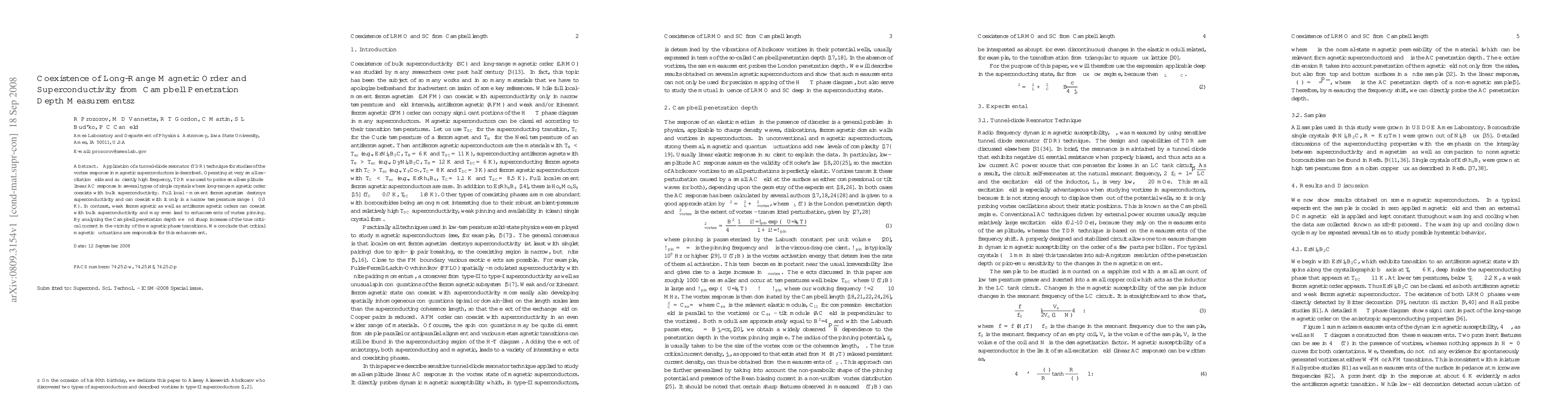 This study uses a tunnel-diode resonator technique to investigate the coexistence of long-range magnetic order and superconductivity in magnetic superconductors. The research finds that weak ferromagnetic and antiferromagnetic orders can coexist with superconductivity, leading to enhanced vortex pinning, while full local-moment ferromagnetism destroys superconductivity.