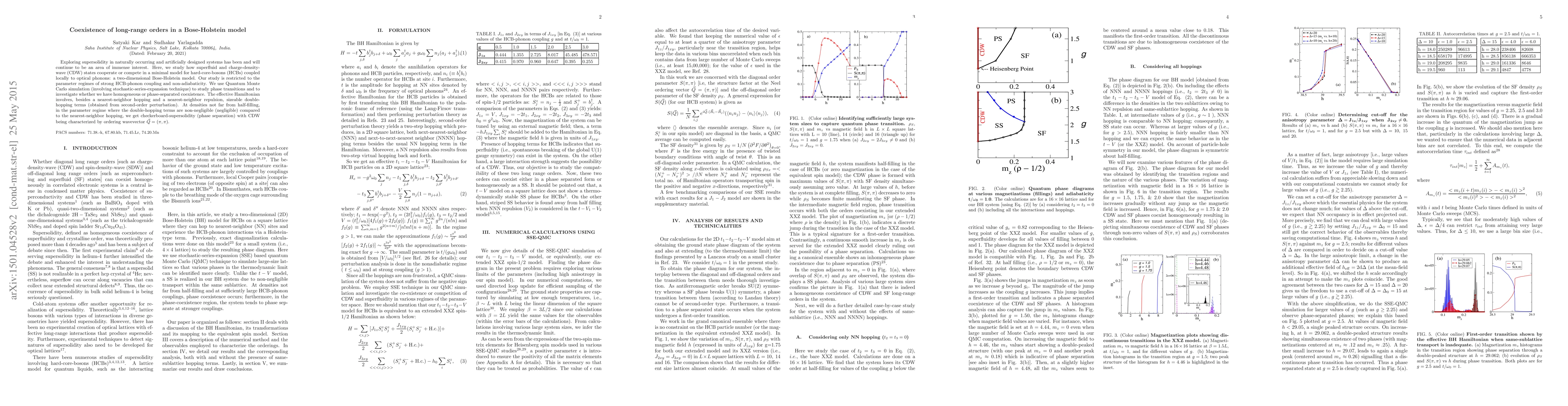 Exploring supersolidity in naturally occurring and artificially designed systems has been and will continue to be an area of immense interest. Here, we study how superfluid and charge-density-wave (CDW) states cooperate or compete in a minimal model for hard-core-bosons (HCBs) coupled locally to optical phonons: a two-dimensional Bose-Holstein model. Our study is restricted to the parameter regimes of strong HCB-phonon coupling and non-adiabaticity. We use Quantum Monte Carlo simulation (involving stochastic-series-expansion technique) to study phase transitions and to investigate whether we have homogeneous or phase-separated coexistence. The effective Hamiltonian involves, besides a nearest-neighbor hopping and a nearest-neighbor repulsion, sizeable double-hopping terms (obtained from second-order perturbation). At densities not far from half-filling, in the parameter regime where the double-hopping terms are non-negligible (negligible) compared to the nearest-neighbor hopping, we get checkerboard-supersolidity (phase separation) with CDW being characterized by ordering wavevector $\vec{Q}=(\pi,\pi)$.
