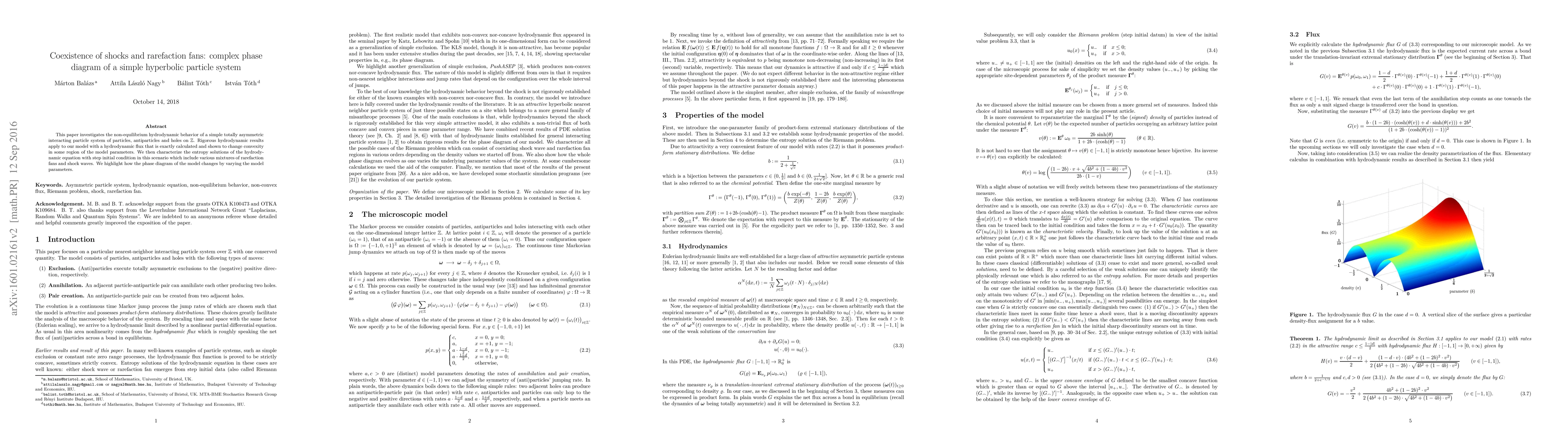 Researchers investigated a simple particle system exhibiting non-equilibrium hydrodynamic behavior, including rarefaction fans and shock waves, and found that the phase diagram changes with model parameters.