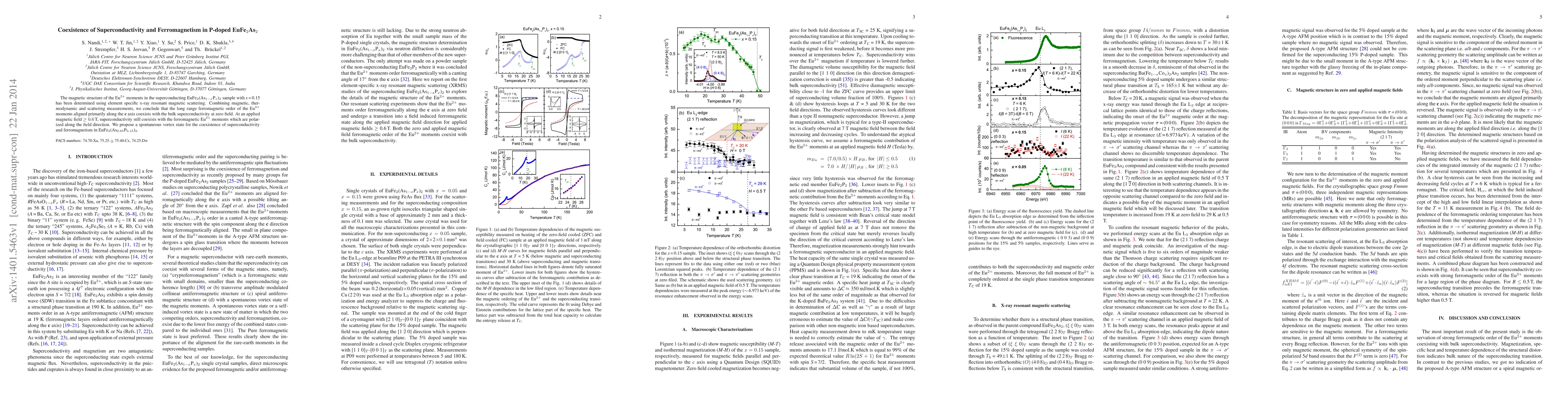 This study reveals that superconductivity in P-doped EuFe2As2 coexists with the long-range ferromagnetic order of Eu2+ moments, primarily aligned along the c-axis, even under applied magnetic fields. The proposed spontaneous vortex state suggests a unique mechanism for this coexistence.