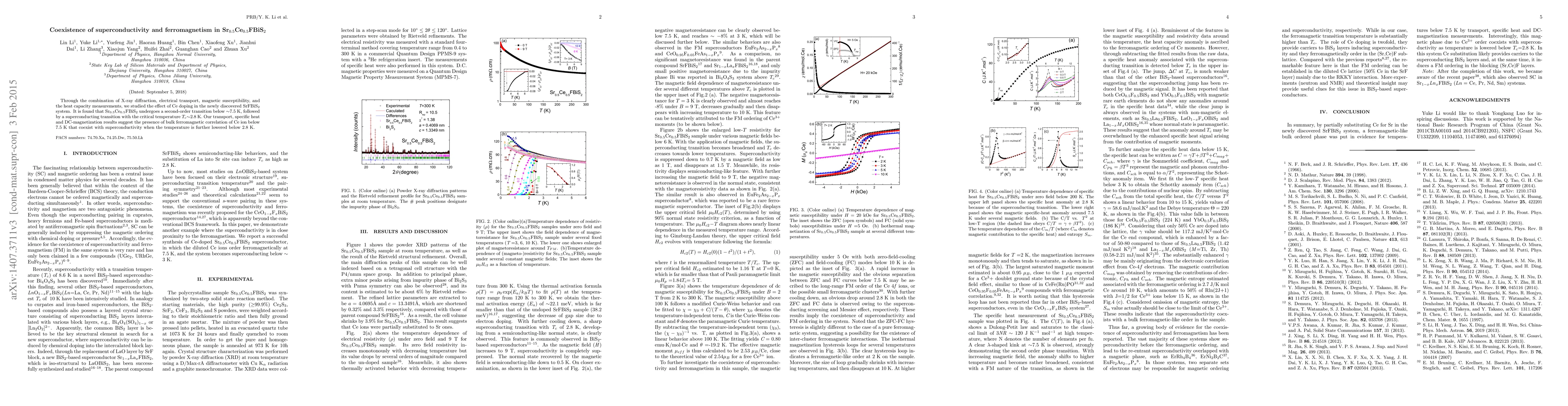 Through the combination of X-ray diffraction, electrical transport, magnetic susceptibility, and the heat capacity measurements, we studied the effect of Ce doping in the newly discovered SrFBiS${2}$ system. It is found that Sr${0.5}$Ce${0.5}$FBiS${2}$ undergoes a second-order transition below $7.5 K, followed by a superconducting transition with the critical temperature Tc=2.8 K. Our transport, specific heat and DC-magnetization results suggest the presence of bulk ferromagneticcorrelation of Ce ion below 7.5 K that coexist with superconductivity when the temperature is further lowered below 2.8 K.