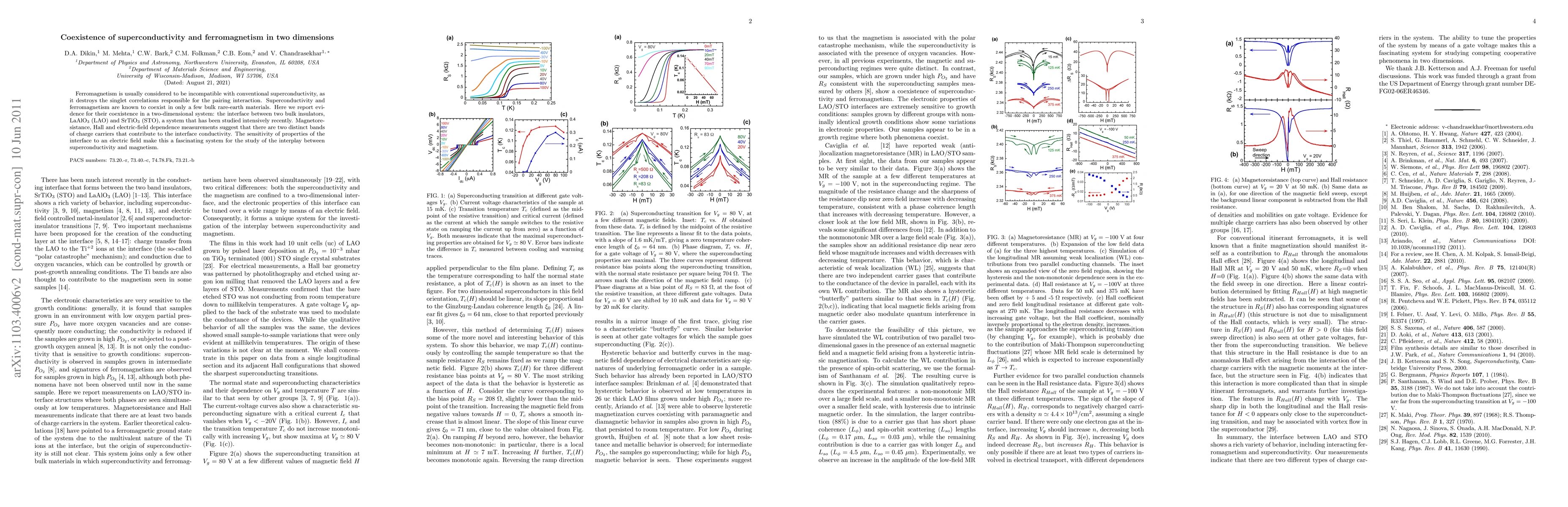 This paper reports the coexistence of superconductivity and ferromagnetism in a two-dimensional interface between LaAlO$_3$ and SrTiO$_3$, challenging the conventional belief of their incompatibility. The study highlights the potential of this system to explore the interaction between these phenomena through electric field-dependent measurements.