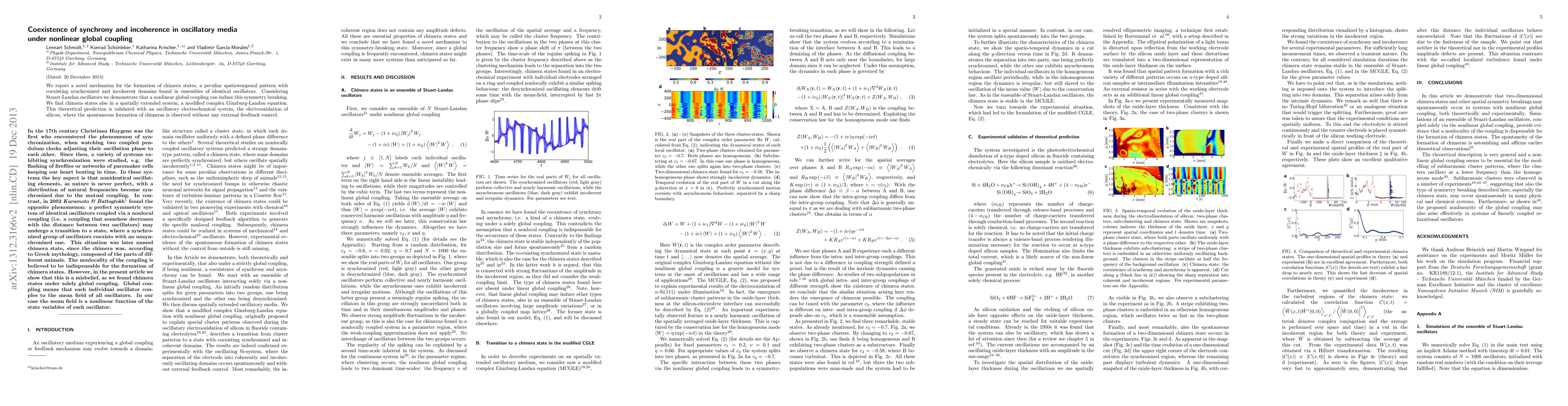 Researchers discovered a mechanism for creating chimera states in oscillatory media with nonlinear global coupling, leading to synchronized and incoherent domains forming simultaneously.
