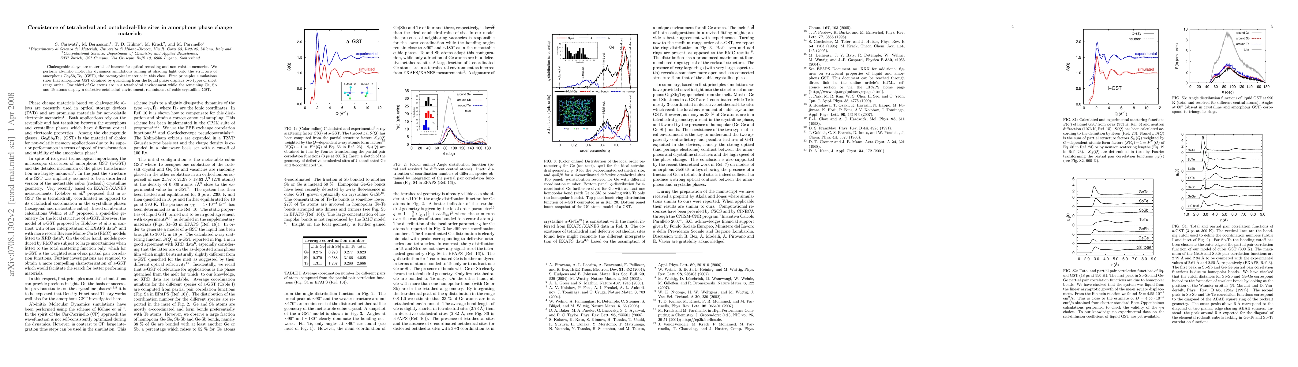 Amorphous Ge2Sb2Te5 alloy exhibits two types of short-range order: tetrahedral and octahedral-like sites. These environments can improve optical recording and non-volatile memory properties.