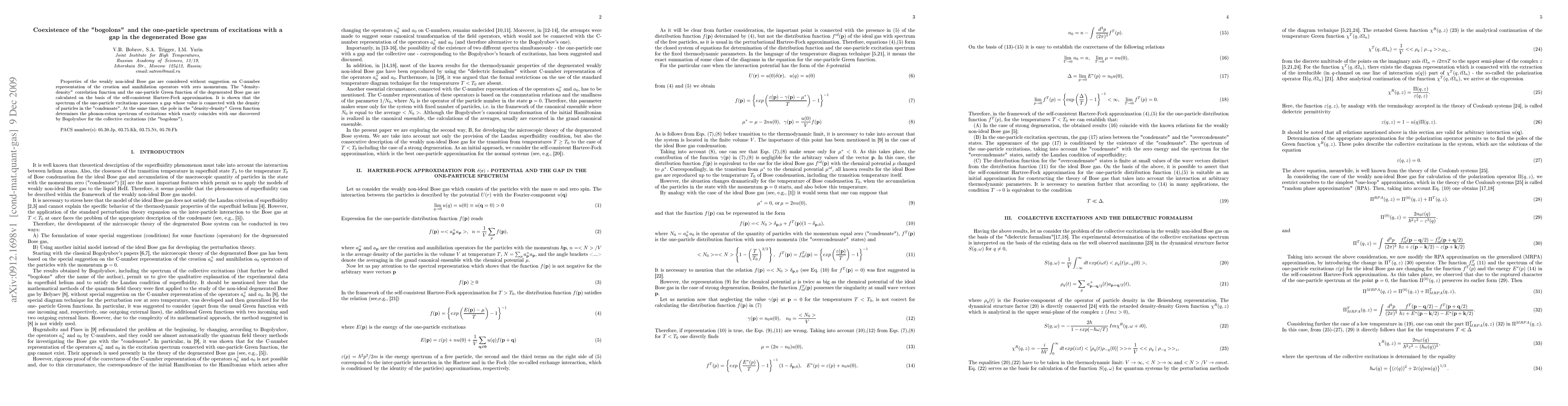 This paper investigates the properties of a weakly non-ideal Bose gas, revealing a gap in the one-particle excitation spectrum linked to the condensate density. The study uses the self-consistent Hartree-Fock approximation to show that the "bogolons" and the gapped one-particle excitations coexist.