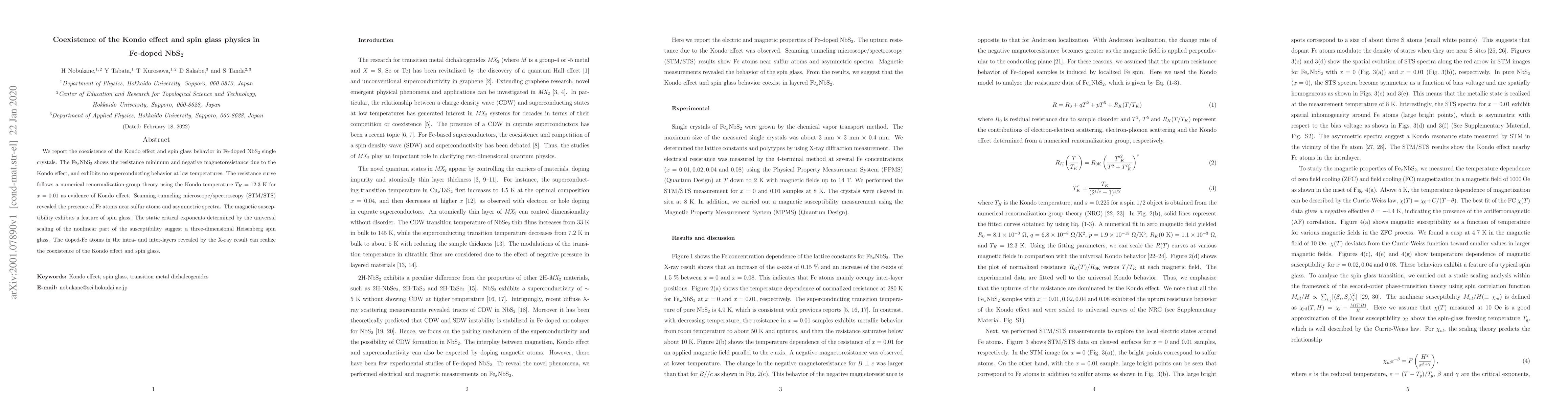 This study reveals that Fe-doped NbS$_2$ exhibits both Kondo effect and spin glass physics, evidenced by resistance minimum and negative magnetoresistance, and magnetic susceptibility features. The coexistence is supported by STM/STS observations and X-ray analysis.