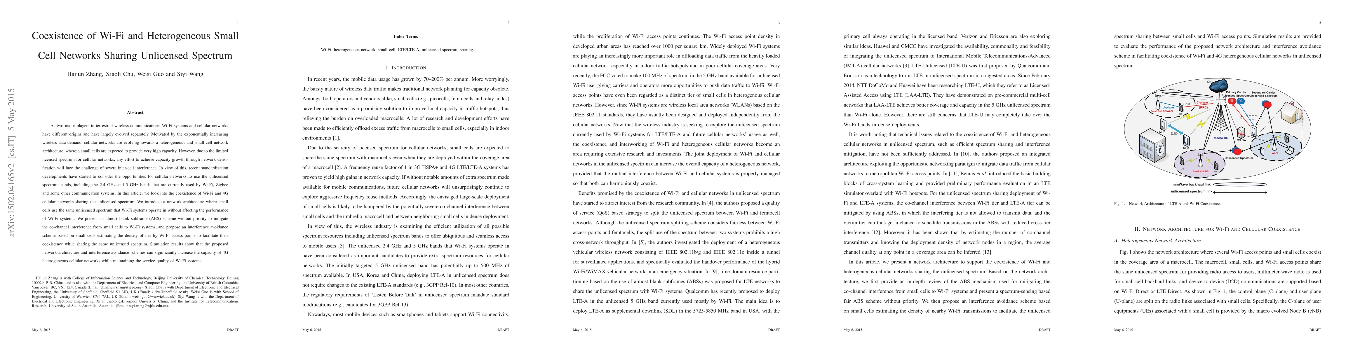 The research introduces a network architecture for LTE/LTE-small cells to exploit unlicensed spectrum used by Wi-Fi systems, employing Almost Blank Subframes (ABS) and an interference avoidance scheme to mitigate interference between Wi-Fi and LTE/LTE-A systems.