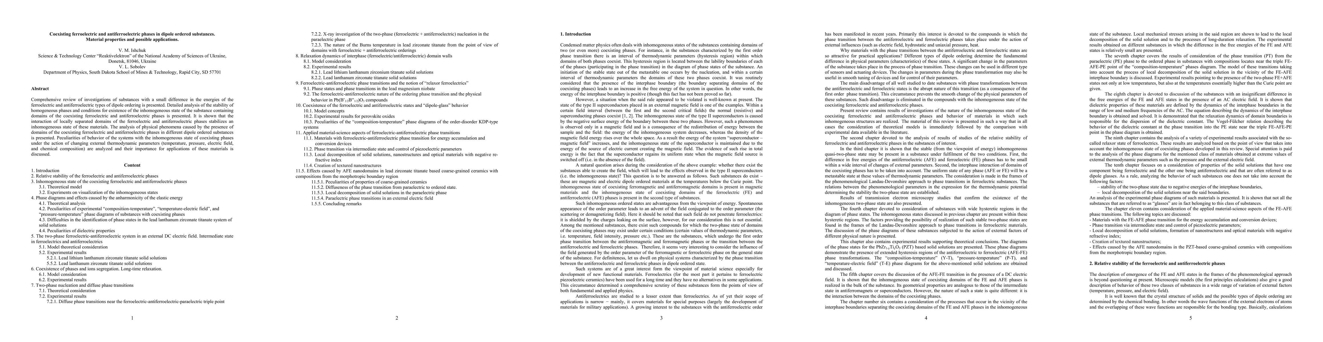 This paper reviews substances with closely related ferroelectric and antiferroelectric dipole ordering, analyzing the stability of coexisting phases and their inhomogeneous states. It highlights the stabilization effect of domain interactions and discusses the physical phenomena and applications relevant to these materials under varying external conditions.