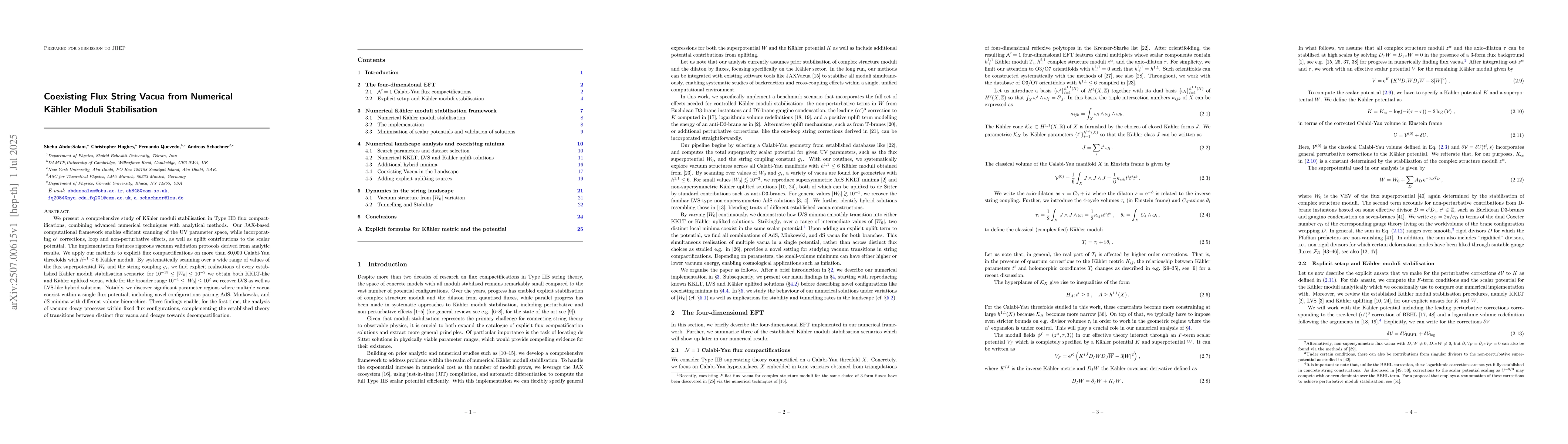 We present a comprehensive study of K\"ahler moduli stabilisation in Type IIB flux compactifications, combining advanced numerical techniques with analytical methods. Our JAX-based computational framework enables efficient scanning of the UV parameter space, while incorporating $\alpha'$ corrections, loop and non-perturbative effects, as well as uplift contributions to the scalar potential. The implementation features rigorous vacuum validation protocols derived from analytic results. We apply our methods to explicit flux compactifications on more than 80,000 Calabi-Yau threefolds with $h^{1,1}\leq 6$ K\"ahler moduli. By systematically scanning over a wide range of values of the flux superpotential $W_0$ and the string coupling $g_s$, we find explicit realisations of every established K\"ahler moduli stabilisation scenario: for $10^{-15} \leq |W_0| \leq 10^{-2}$ we obtain both KKLT-like and K\"ahler uplifted vacua, while for the broader range $10^{-1} \leq |W_0| \leq 10^2$ we recover LVS as well as LVS-like hybrid solutions. Notably, we discover significant parameter regions where multiple vacua coexist within a single flux potential, including novel configurations pairing AdS, Minkowski, and dS minima with different volume hierarchies. These findings enable, for the first time, the analysis of vacuum decay processes within fixed flux configurations, complementing the established theory of transitions between distinct flux vacua and decays towards decompactification.