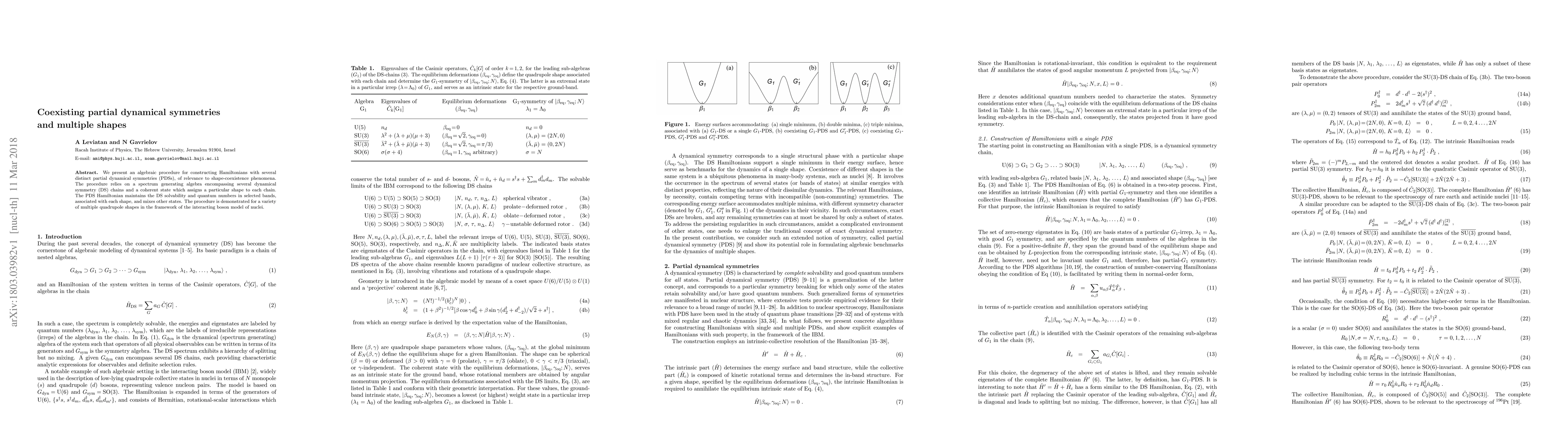 This paper proposes an algebraic method to construct Hamiltonians with multiple partial dynamical symmetries relevant to shape-coexistence in nuclei. It utilizes a spectrum generating algebra and coherent states to maintain solvability and quantum numbers while mixing states across different shapes.