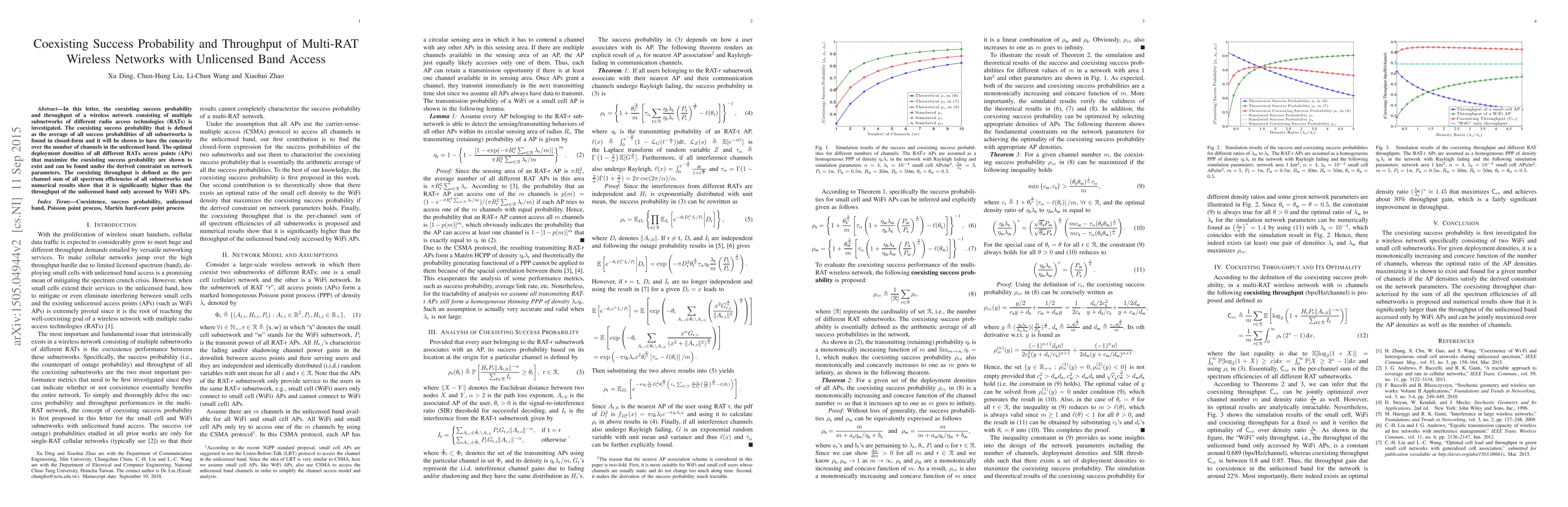 In this letter, the coexisting success probability and throughput of a wireless network consisting of multiple subnetworks of different radio access technologies (RATs) is investigated. The coexisting success probability that is defined as the average of all success probabilities of all subnetworks is found in closed-form and it will be shown to have the concavity over the number of channels in the unlicensed band. The optimal deployment densities of all different RATs access points (APs) that maximize the coexisting success probability are shown to exist and can be found under the derived constraint on network parameters. The coexisting throughput is defined as the per-channel sum of all spectrum efficiencies of all subnetworks and numerical results show that it is significantly higher than the throughput of the unlicensed band only accessed by WiFi APs.