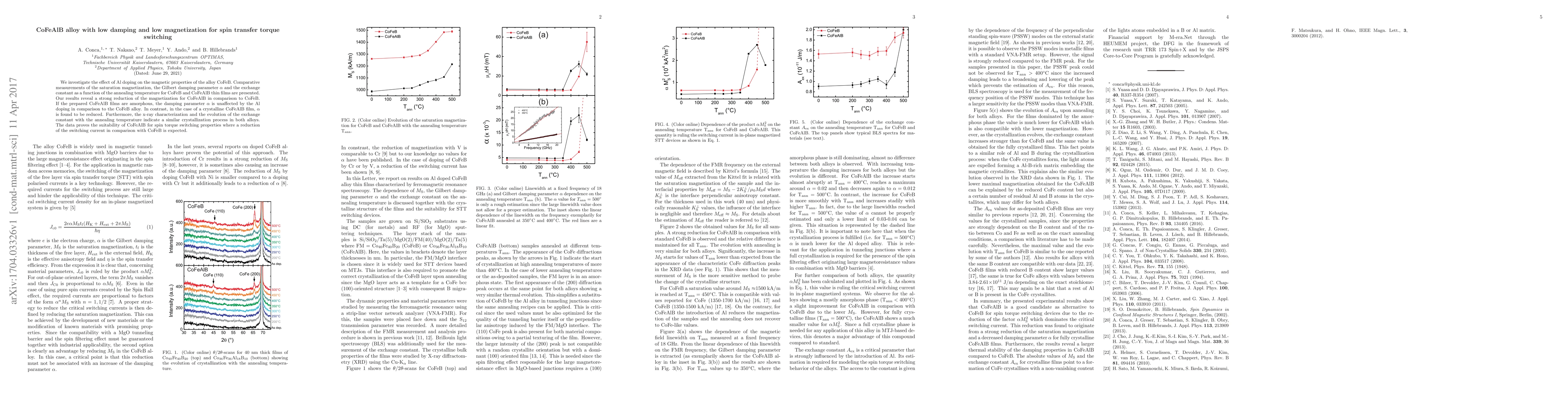 We investigate the effect of Al doping on the magnetic properties of the alloy CoFeB. Comparative measurements of the saturation magnetization, the Gilbert damping parameter $\alpha$ and the exchange constant as a function of the annealing temperature for CoFeB and CoFeAlB thin films are presented. Our results reveal a strong reduction of the magnetization for CoFeAlB in comparison to CoFeB. If the prepared CoFeAlB films are amorphous, the damping parameter $\alpha$ is unaffected by the Al doping in comparison to the CoFeB alloy. In contrast, in the case of a crystalline CoFeAlB film, $\alpha$ is found to be reduced. Furthermore, the x-ray characterization and the evolution of the exchange constant with the annealing temperature indicate a similar crystallization process in both alloys. The data proves the suitability of CoFeAlB for spin torque switching properties where a reduction of the switching current in comparison with CoFeB is expected.
