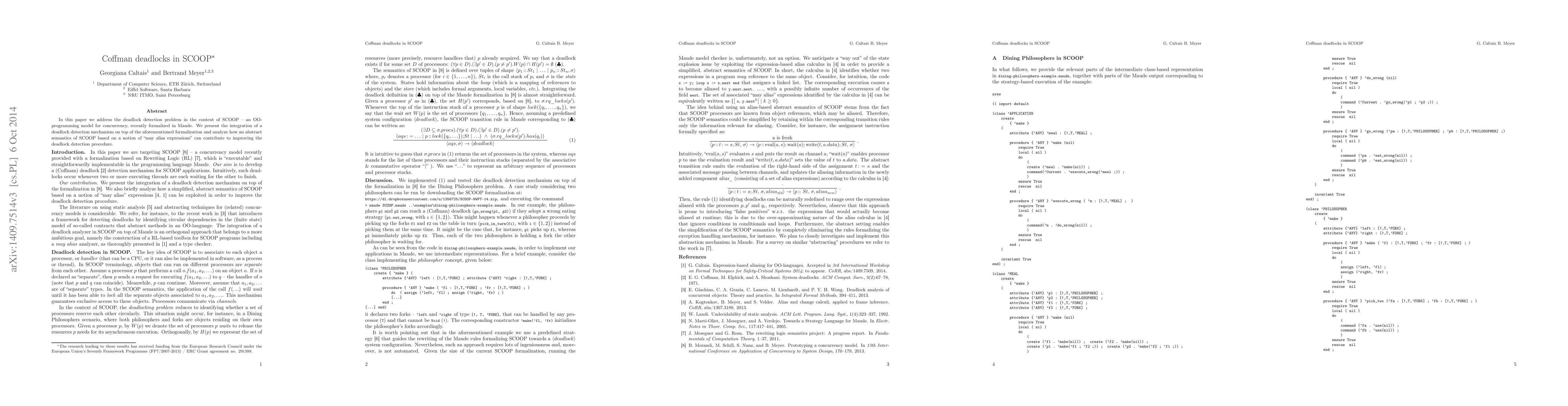 In this paper we address the deadlock detection problem in the context of SCOOP - an OO-programming model for concurrency, recently formalized in Maude. We present the integration of a deadlock detection mechanism on top of the aforementioned formalization and analyze how an abstract semantics of SCOOP based on a notion of "may alias expressions" can contribute to improving the deadlock detection procedure.