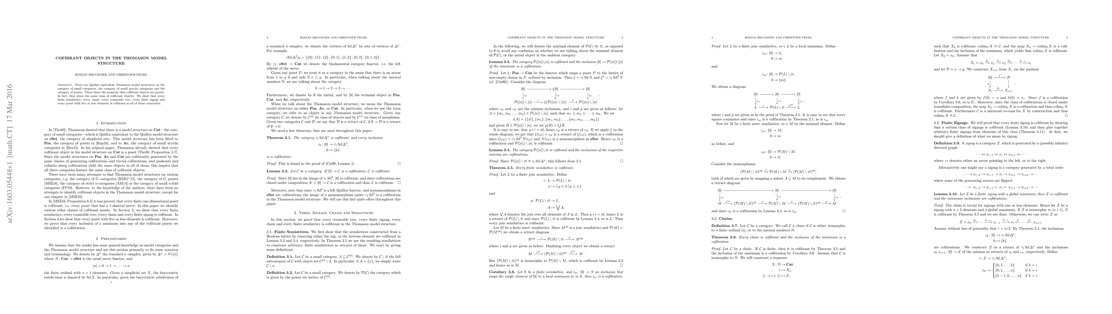 This paper demonstrates that various types of posets, including finite semilattices, chains, countable trees, finite zigzags, and posets with five or fewer elements, are cofibrant in Quillen equivalent Thomason model structures across small categories, small acyclic categories, and posets. It establishes the shared cofibrant class among these structures.