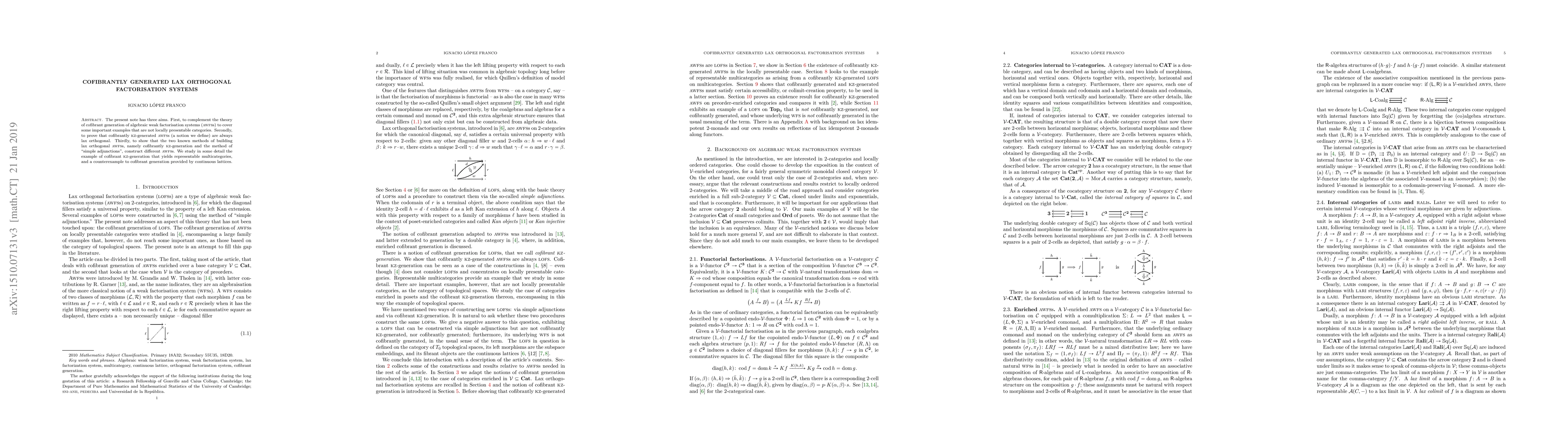 The present note has three aims. First, to complement the theory of cofibrant generation of algebraic weak factorisation systems (AWFSs) to cover some important examples that are not locally presentable categories. Secondly, to prove that cofibrantly KZ-generated AWFSs (a notion we define) are always lax orthogonal. Thirdly, to show that the two known methods of building lax orthogonal AWFSs, namely cofibrantly KZ-generation and the method of "simple adjunctions", construct different AWFSs. We study in some detail the example of cofibrant KZ-generation that yields representable multicategories, and a counterexample to cofibrant generation provided by continuous lattices.