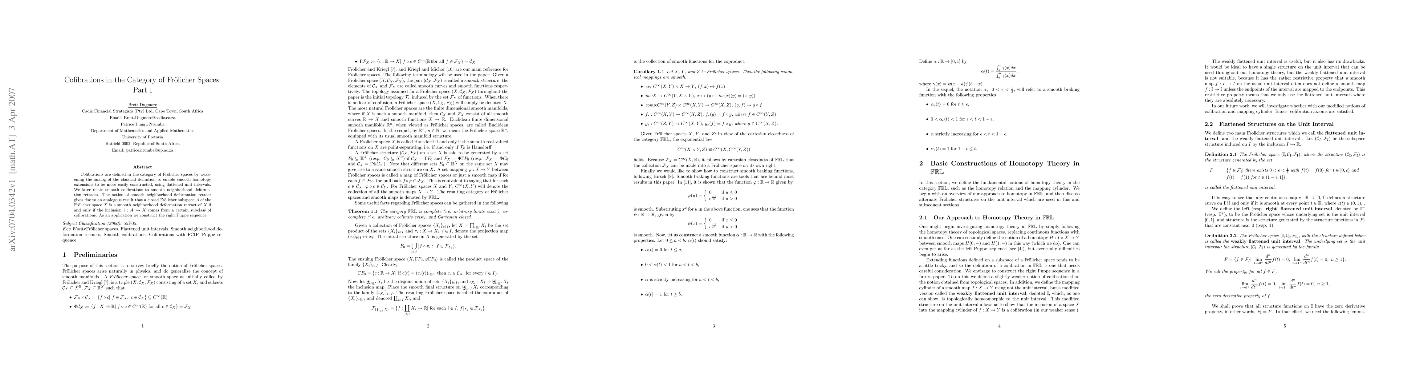 Cofibrations are defined in the category of Fr\"olicher spaces by weakening the analog of the classical definition to enable smooth homotopy extensions to be more easily constructed, using flattened unit intervals. We later relate smooth cofibrations to smooth neighborhood deformation retracts. The notion of smooth neighborhood deformation retract gives rise to an analogous result that a closed Fr\"olicher subspace $A$ of the Fr\"olicher space $X$ is a smooth neighborhood deformation retract of $X$ if and only if the inclusion $i: A\hookrightarrow X$ comes from a certain subclass of cofibrations. As an application we construct the right Puppe sequence.