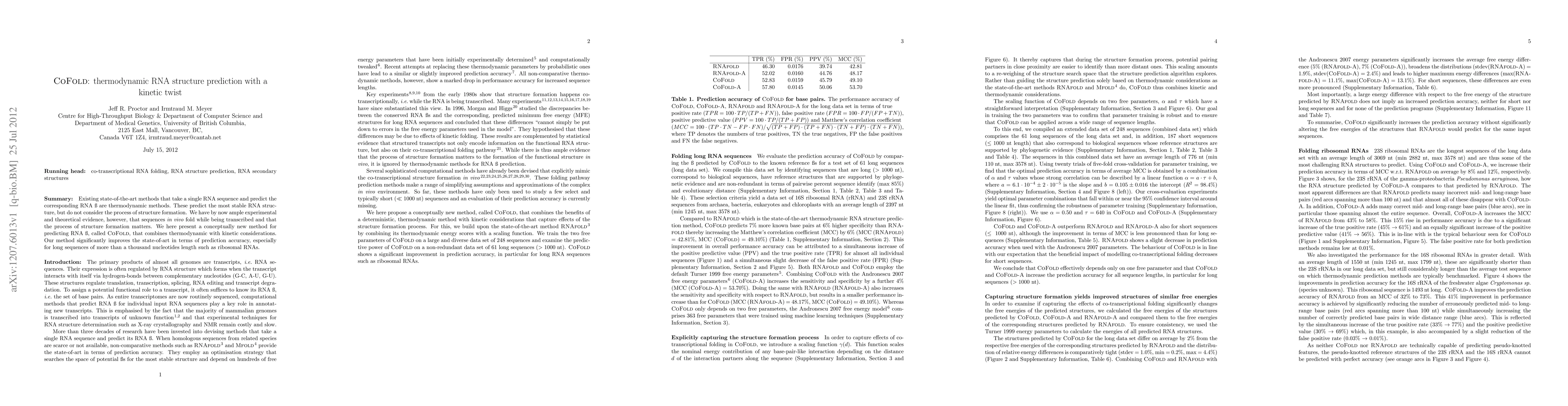 The paper introduces CoFold, a method that combines thermodynamic and kinetic considerations for RNA secondary-structure prediction, improving accuracy, especially for long sequences.