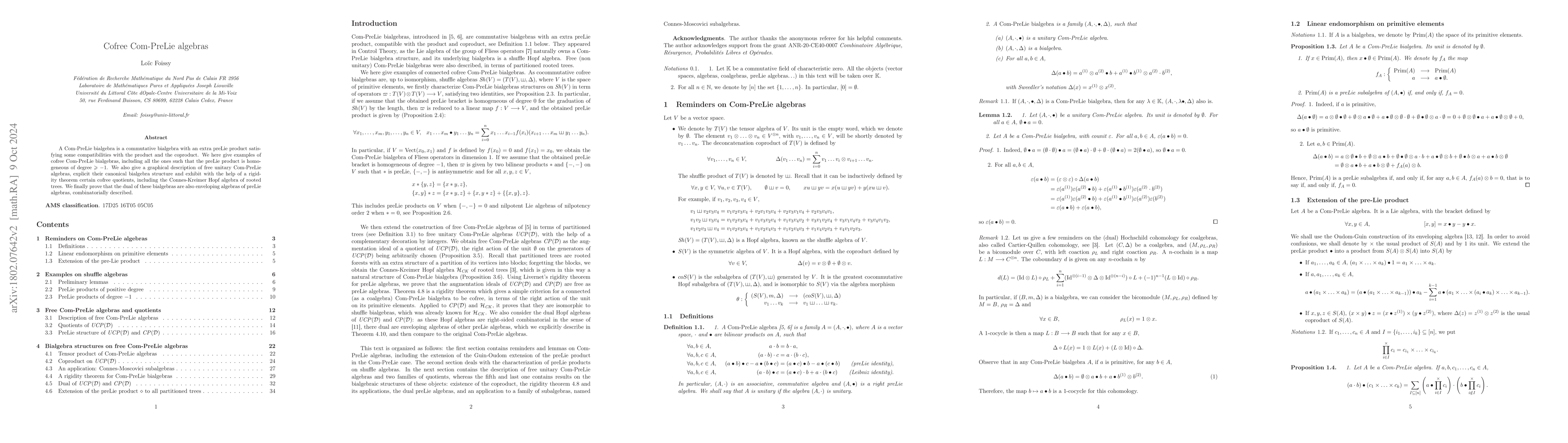 This paper explores cofree Com-PreLie bialgebras, providing examples where the preLie product is homogeneous of degree ≥ -1. It also describes free unitary Com-PreLie algebras graphically, outlines their bialgebra structure, and proves that the duals of these bialgebras are enveloping algebras of preLie algebras.