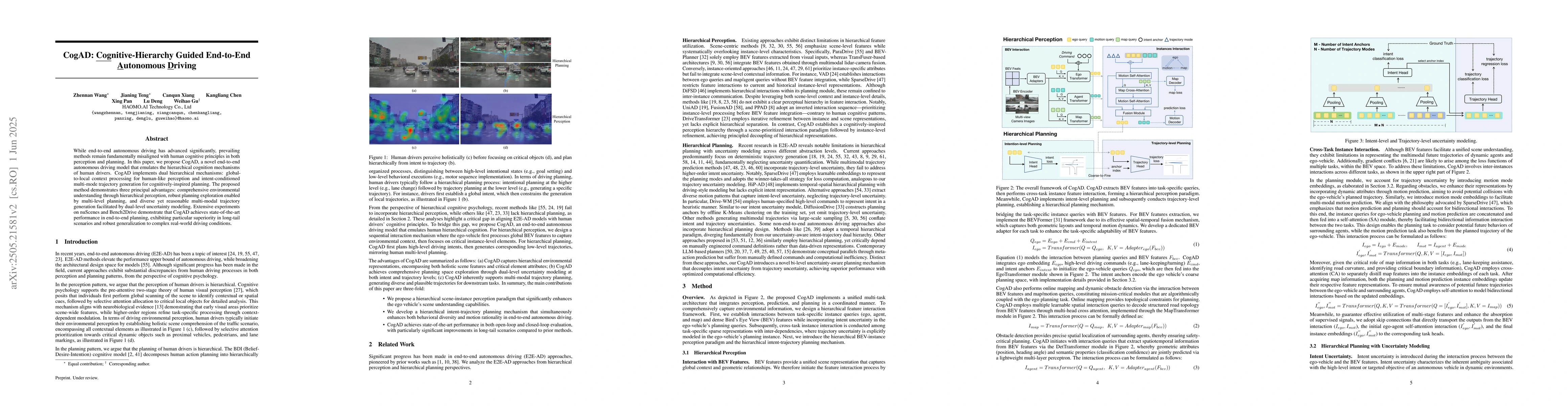 The paper proposes CogAD, an end-to-end autonomous driving model that mimics human driver cognition using dual hierarchical mechanisms for perception and planning.