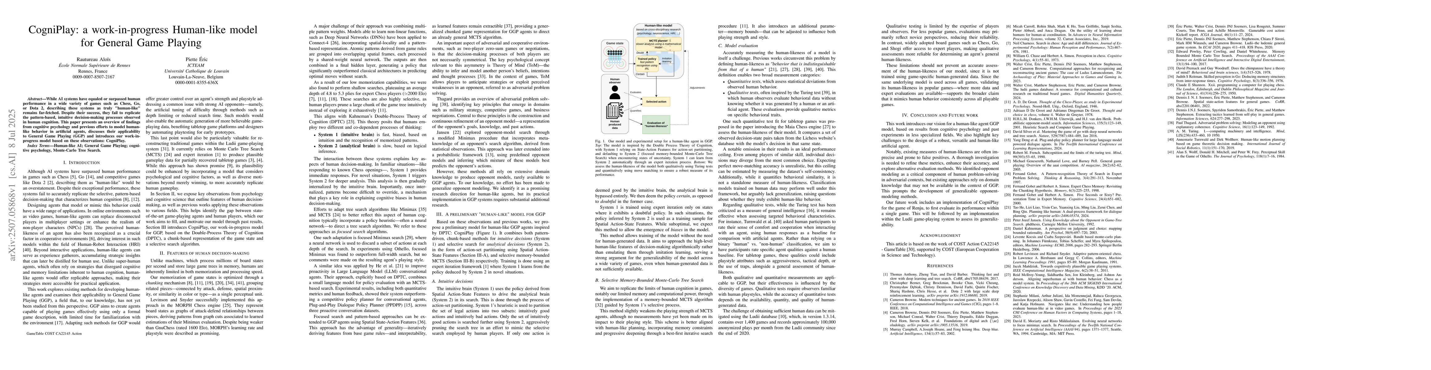 While AI systems have equaled or surpassed human performance in a wide variety of games such as Chess, Go, or Dota 2, describing these systems as truly "human-like" remains far-fetched. Despite their success, they fail to replicate the pattern-based, intuitive decision-making processes observed in human cognition. This paper presents an overview of findings from cognitive psychology and previous efforts to model human-like behavior in artificial agents, discusses their applicability to General Game Playing (GGP) and introduces our work-in-progress model based on these observations: CogniPlay.