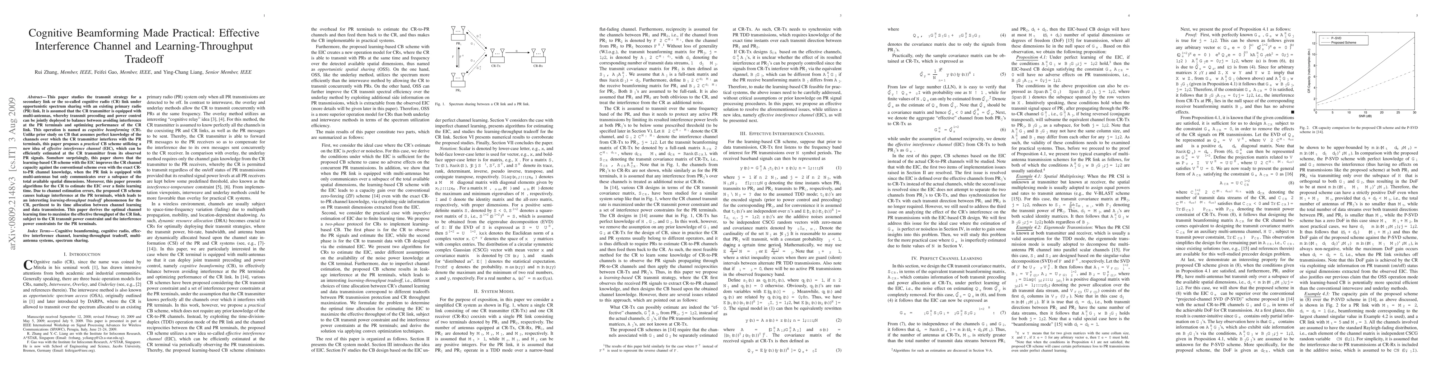 This paper studies the transmit strategy for a secondary link or the so-called cognitive radio (CR) link under opportunistic spectrum sharing with an existing primary radio (PR) link. It is assumed that the CR transmitter is equipped with multi-antennas, whereby transmit precoding and power control can be jointly deployed to balance between avoiding interference at the PR terminals and optimizing performance of the CR link. This operation is named as cognitive beamforming (CB). Unlike prior study on CB that assumes perfect knowledge of the channels over which the CR transmitter interferes with the PR terminals, this paper proposes a practical CB scheme utilizing a new idea of effective interference channel (EIC), which can be efficiently estimated at the CR transmitter from its observed PR signals. Somehow surprisingly, this paper shows that the learning-based CB scheme with the EIC improves the CR channel capacity against the conventional scheme even with the exact CR-to-PR channel knowledge, when the PR link is equipped with multi-antennas but only communicates over a subspace of the total available spatial dimensions. Moreover, this paper presents algorithms for the CR to estimate the EIC over a finite learning time. Due to channel estimation errors, the proposed CB scheme causes leakage interference at the PR terminals, which leads to an interesting learning-throughput tradeoff phenomenon for the CR, pertinent to its time allocation between channel learning and data transmission. This paper derives the optimal channel learning time to maximize the effective throughput of the CR link, subject to the CR transmit power constraint and the interference power constraints for the PR terminals.