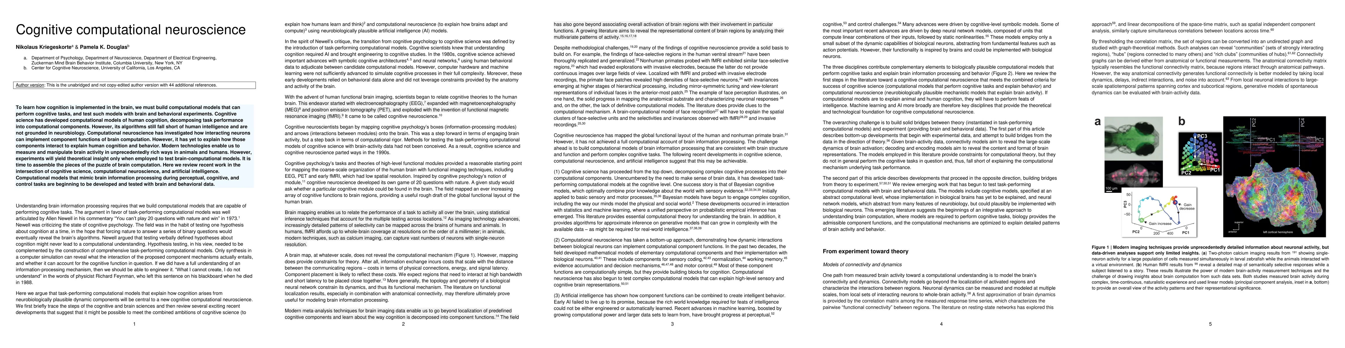 This paper reviews the integration of cognitive science, computational neuroscience, and artificial intelligence to develop models that mimic brain information processing. It emphasizes the need for computational models to be grounded in neurobiology and tested against brain and behavioral data to advance our understanding of human cognition.