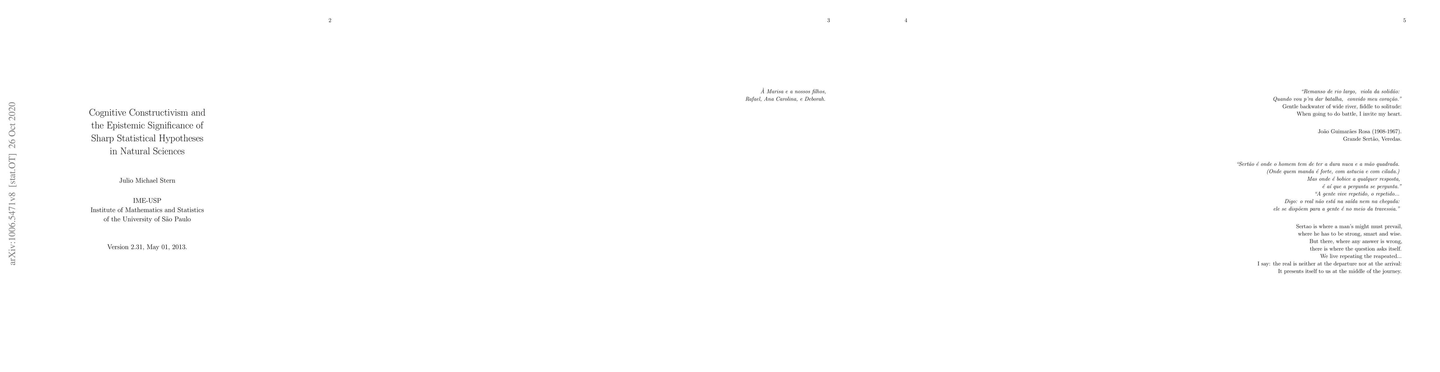 This book presents our case in defense of a constructivist epistemological framework and the use of compatible statistical theory and inference tools. The basic metaphor of decision theory is the maximization of a gambler's expected fortune, according to his own subjective utility, prior beliefs an learned experiences. This metaphor has proven to be very useful, leading the development of Bayesian statistics since its XX-th century revival, rooted on the work of de Finetti, Savage and others. The basic metaphor presented in this text, as a foundation for cognitive constructivism, is that of an eigen-solution, and the verification of its objective epistemic status. The FBST - Full Bayesian Significance Test - is the cornerstone of a set of statistical tolls conceived to assess the epistemic value of such eigen-solutions, according to their four essential attributes, namely, sharpness, stability, separability and composability. We believe that this alternative perspective, complementary to the one ofered by decision theory, can provide powerful insights and make pertinent contributions in the context of scientific research.