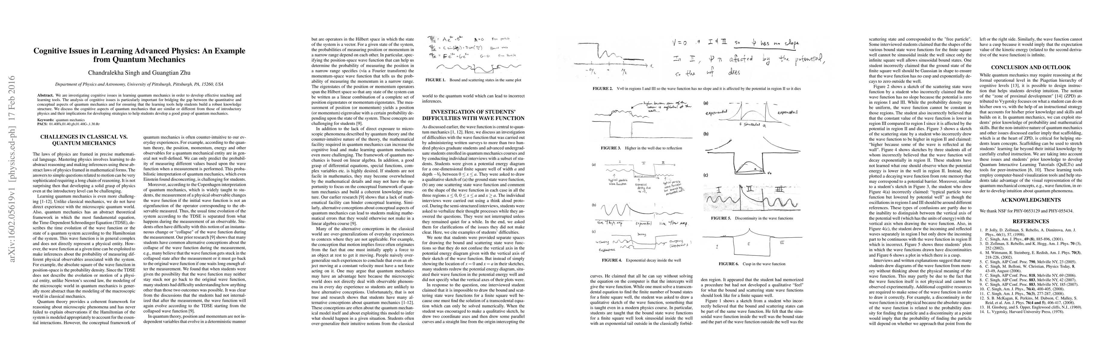This paper investigates cognitive challenges in learning quantum mechanics to create effective teaching tools, focusing on bridging quantitative and conceptual understanding. It compares cognitive issues in quantum mechanics with those in introductory physics to develop strategies for better student comprehension.