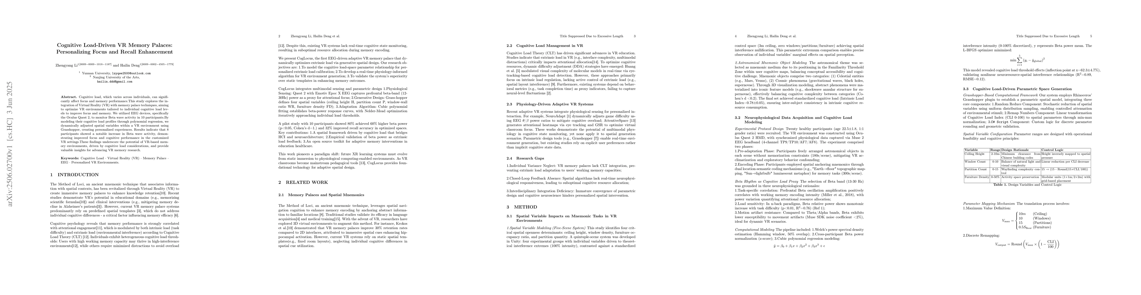 This study uses VR to personalize environments based on individual cognitive load levels, resulting in improved focus and memory performance for 8 out of 10 participants.