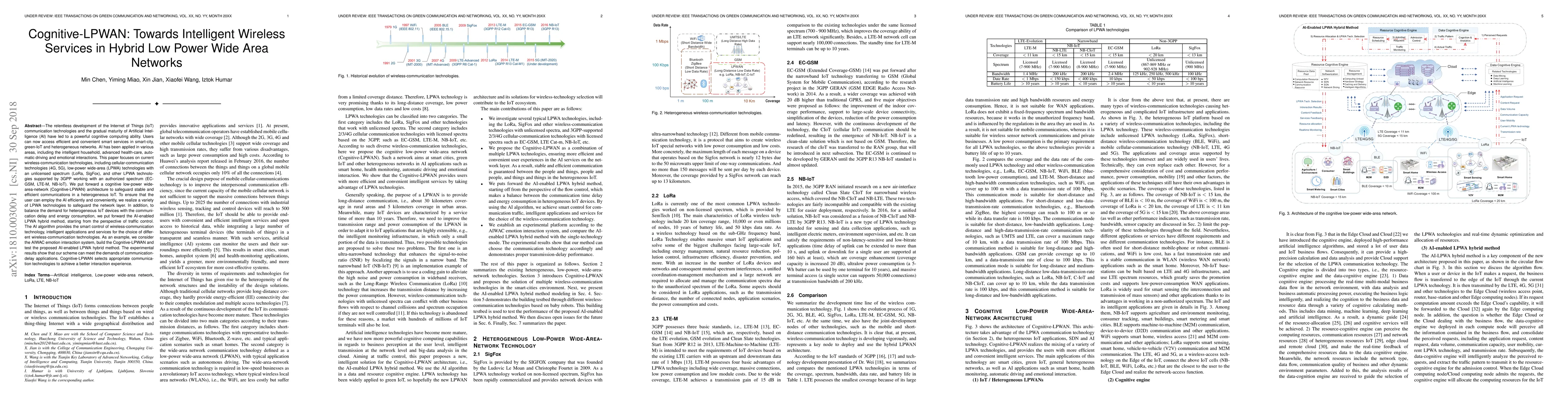 This paper proposes a Cognitive-LPWAN architecture to enable intelligent wireless services in hybrid low-power wide area networks, leveraging AI for efficient traffic control and communication technology selection. Experimental results demonstrate the AI-enabled LPWA hybrid method's effectiveness in meeting communication-delay requirements and enhancing interaction experiences.