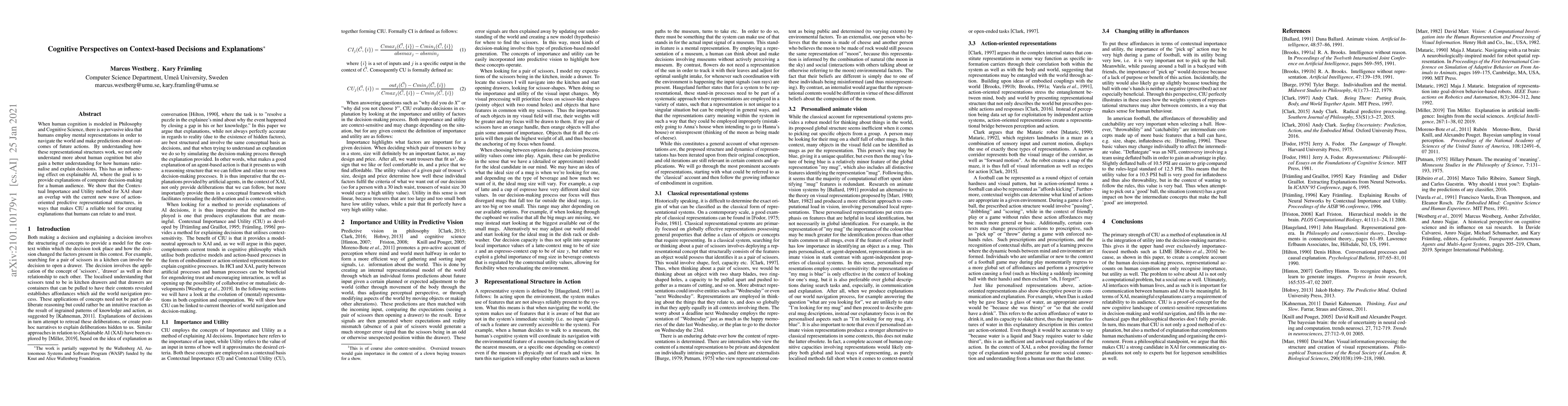 When human cognition is modeled in Philosophy and Cognitive Science, there is a pervasive idea that humans employ mental representations in order to navigate the world and make predictions about outcomes of future actions. By understanding how these representational structures work, we not only understand more about human cognition but also gain a better understanding for how humans rationalise and explain decisions. This has an influencing effect on explainable AI, where the goal is to provide explanations of computer decision-making for a human audience. We show that the Contextual Importance and Utility method for XAI share an overlap with the current new wave of action-oriented predictive representational structures, in ways that makes CIU a reliable tool for creating explanations that humans can relate to and trust.