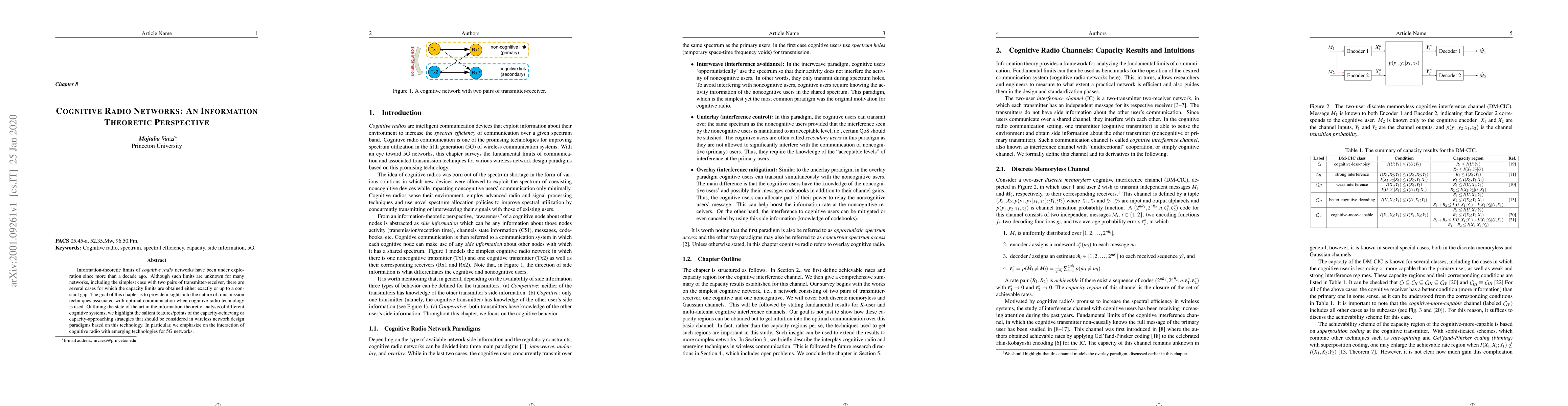 This paper explores the information-theoretic limits of cognitive radio networks, focusing on optimal transmission techniques and capacity-achieving strategies. It highlights the current state of research and emphasizes the integration of cognitive radio technology with emerging 5G network designs.