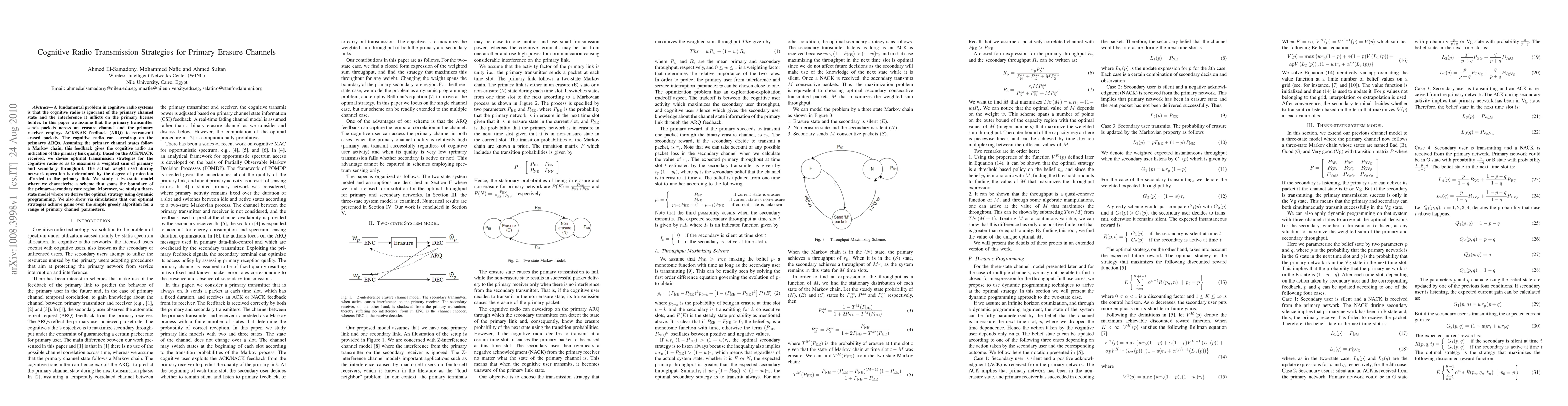This paper develops optimal transmission strategies for cognitive radios in primary erasure channels, leveraging ACK/NAK feedback to infer primary link quality. It proposes strategies to maximize the weighted sum of primary and secondary throughput, achieving gains over greedy algorithms in simulations.
