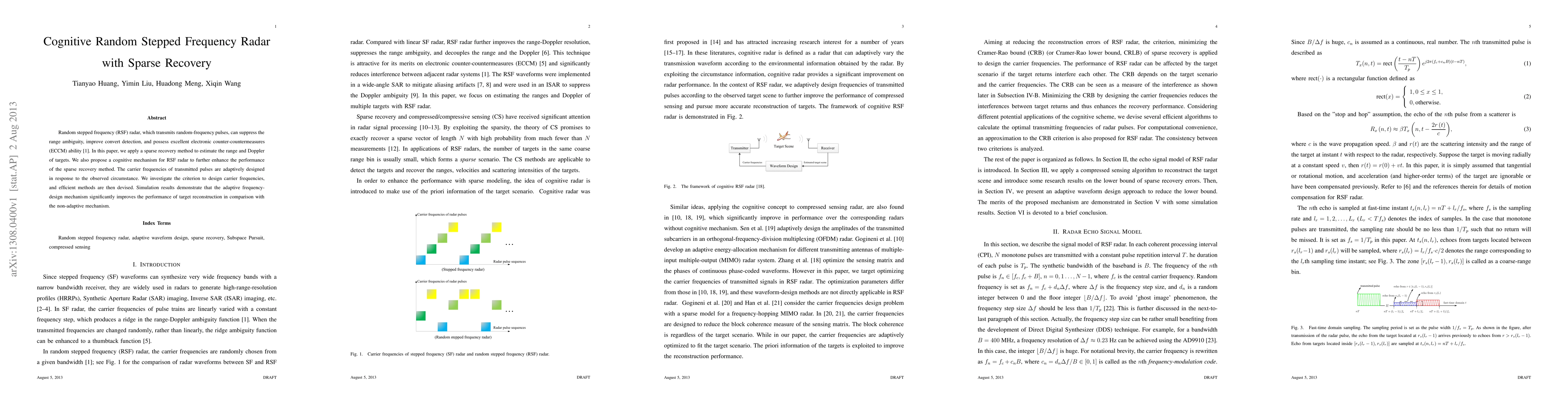 Researchers improve target reconstruction in Random Stepped Frequency Radar using adaptive frequency design and sparse recovery methods, demonstrating significant performance gains over traditional mechanisms.