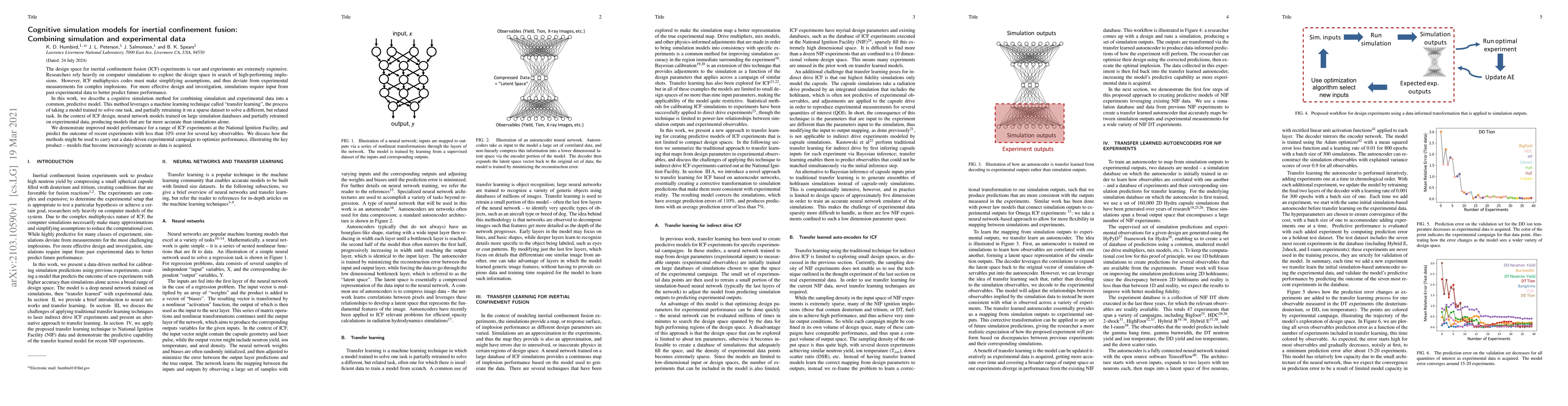 This paper presents a cognitive simulation method that combines simulation and experimental data to enhance the predictive accuracy of inertial confinement fusion (ICF) experiments. By employing transfer learning techniques, neural networks trained on simulation data are partially retrained on experimental data, resulting in models that outperform simulations alone and predict experimental outcomes with less than ten percent error.